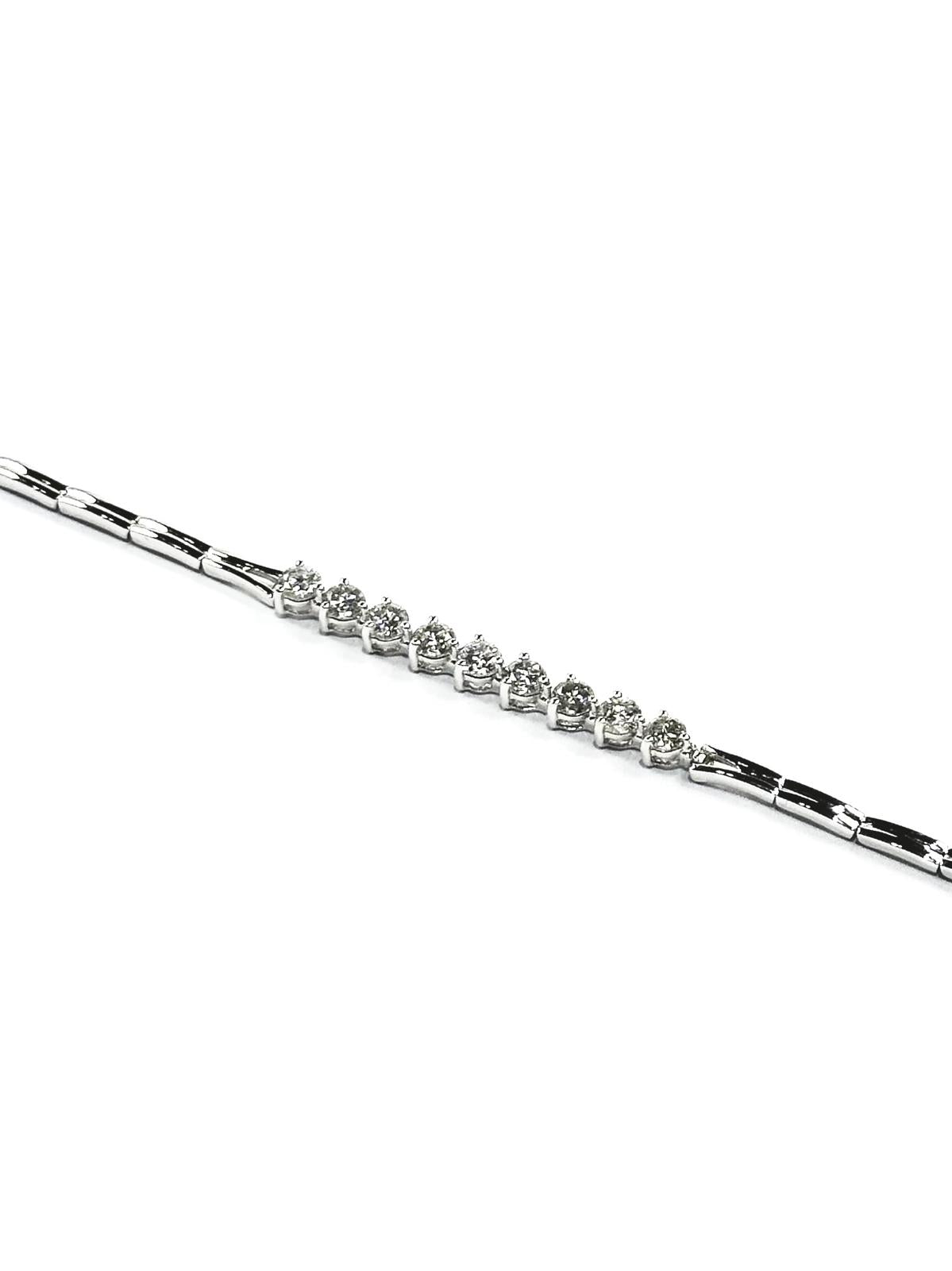 Diamond bracelet with 9 round brilliant diamonds 1.8 carat in 18k white gold. Estimate length is 16.5CM. (18k, Natural)