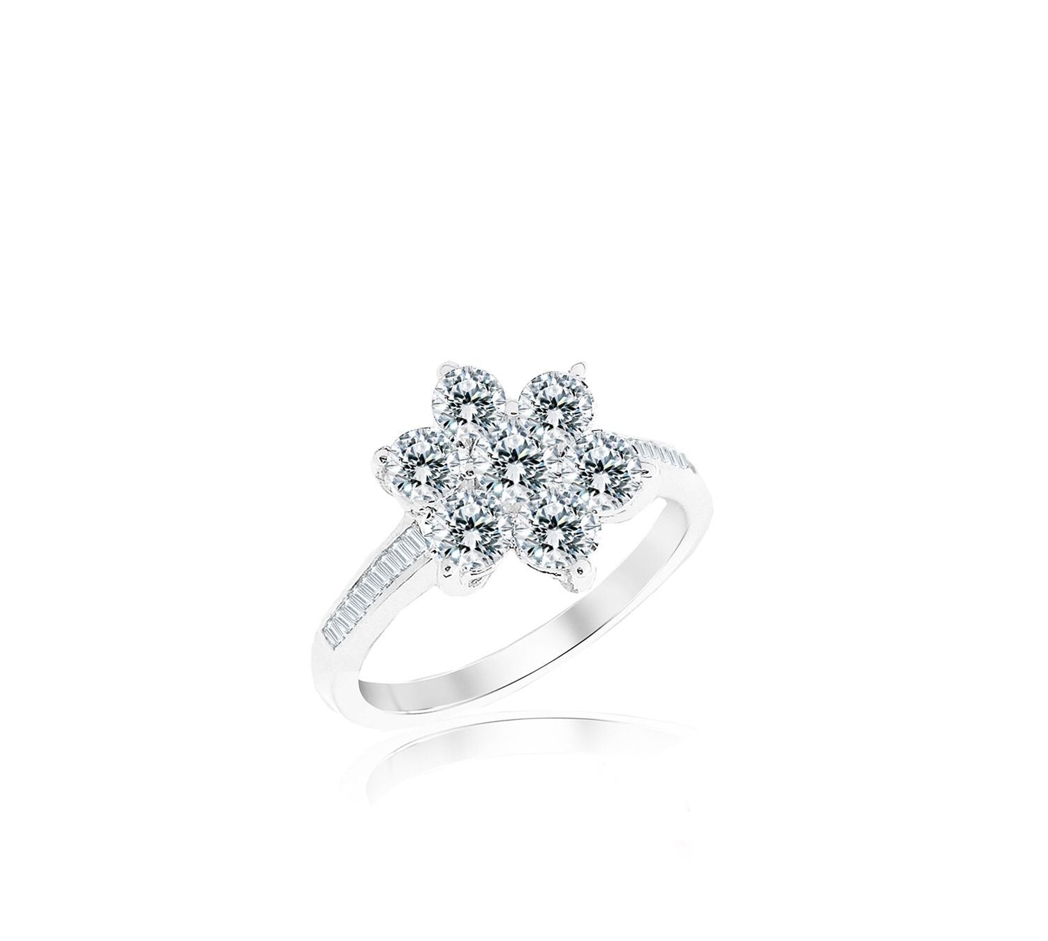 Diamond ring with 1 round brilliant diamond 0.16 carat and 60 round brilliant diamonds 0.36 carat in 18k gold, white. (18k, Natural)