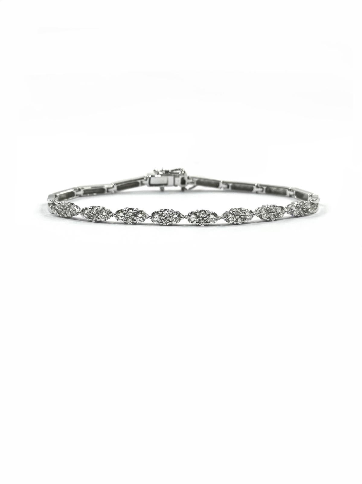 Diamond bracelet, half circle diamonds with 32 round brilliant diamonds 1.66 carat in 18k gold, white. (18k, Natural)