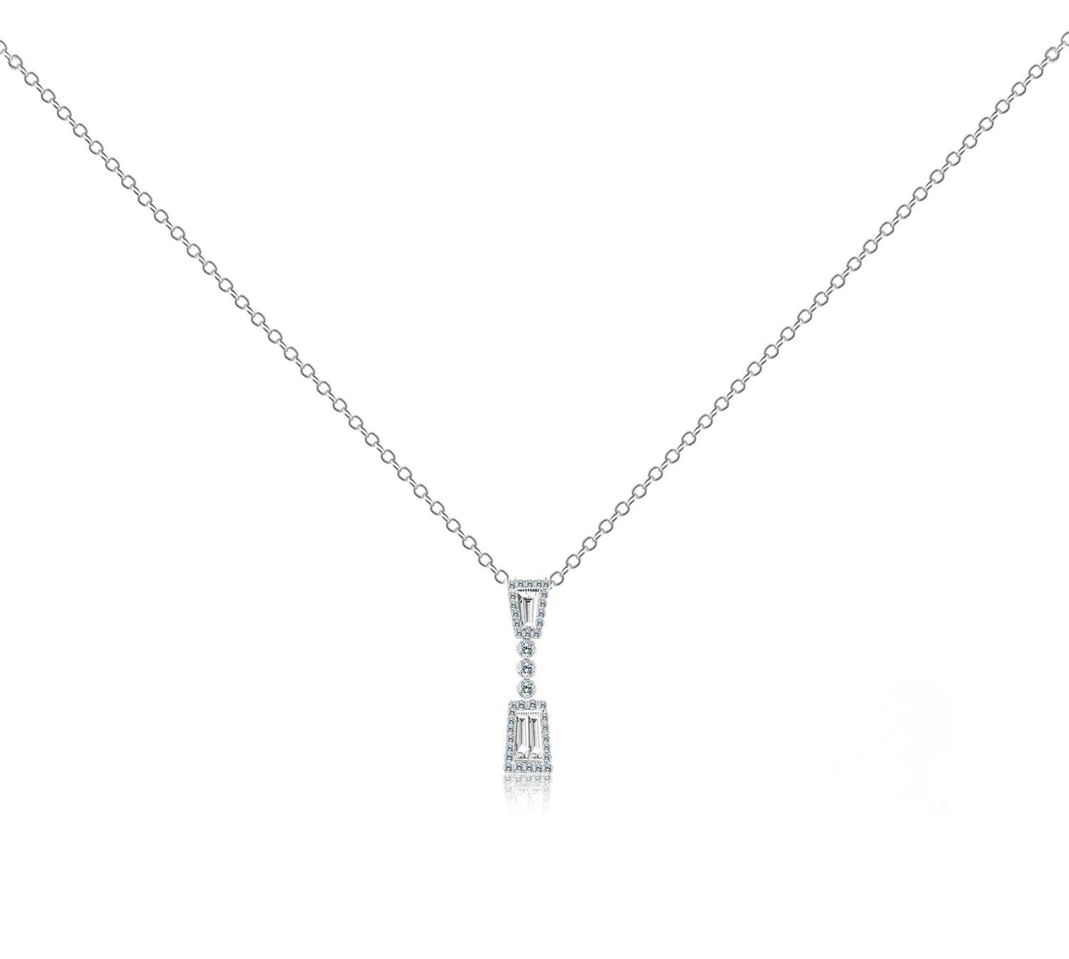 Diamond pendant with 37 round brilliant diamonds 0.20 carat and 3 Tapered diamonds 0.29 carat in 18k gold, white. (18k, Natural)