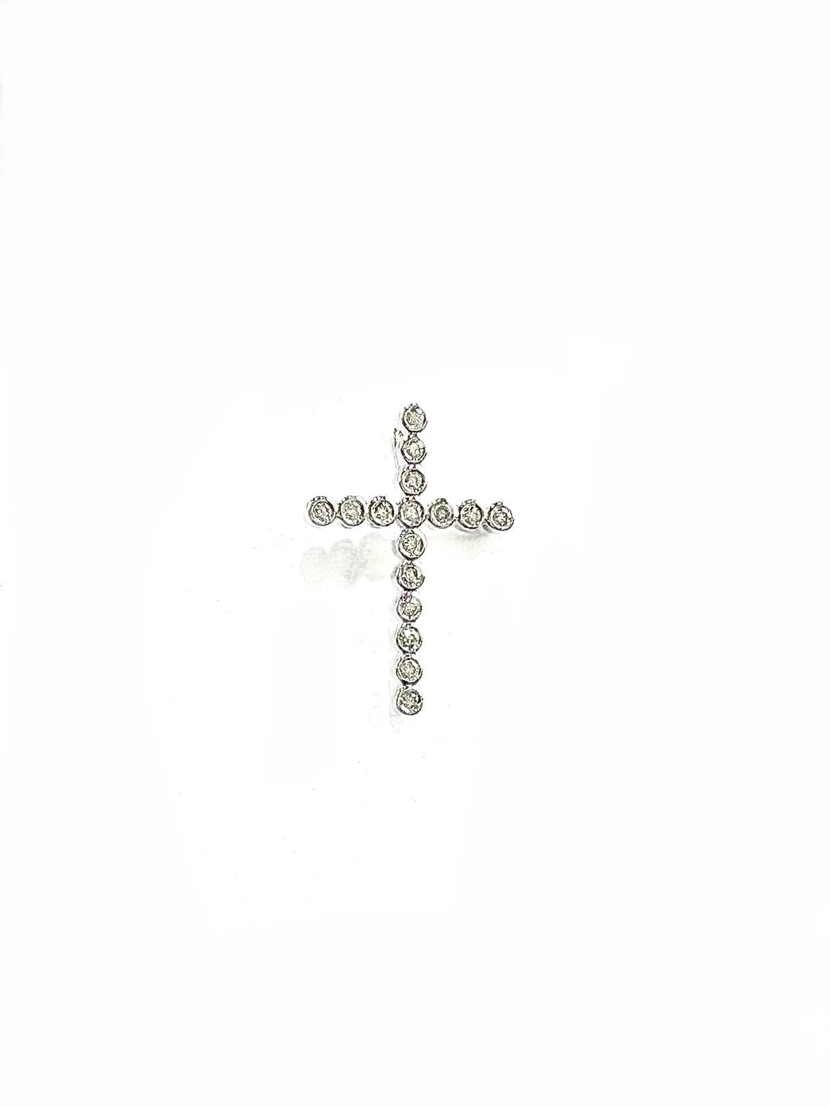 Diamond pendant enhanced with 9 round brilliant diamonds 0.09 carat in 18K gold, white. (18k, Natural)