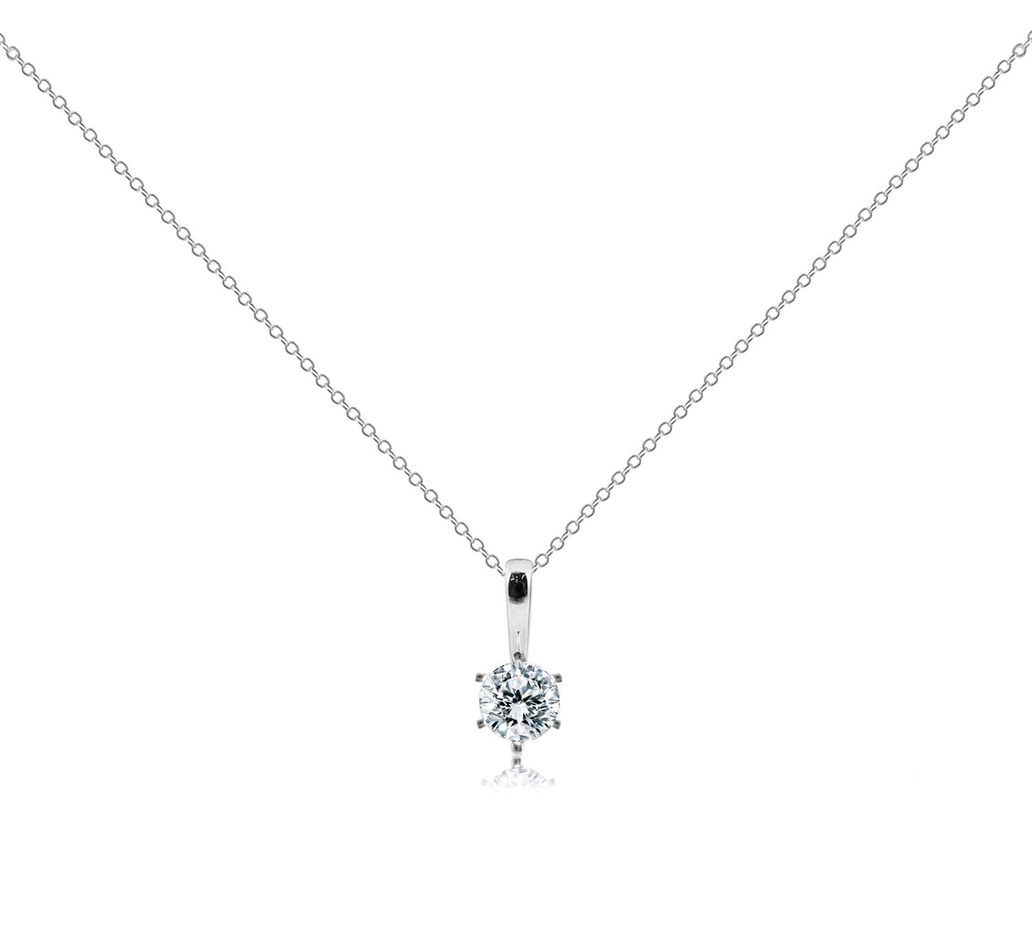 Diamond pendant setting embraced by 5 prongs in 18k gold, white. Can be crafted to set individual centre diamond carat size 0.30 to 3ct, white, rose, yellow, platinum. (5 Claws Classic)