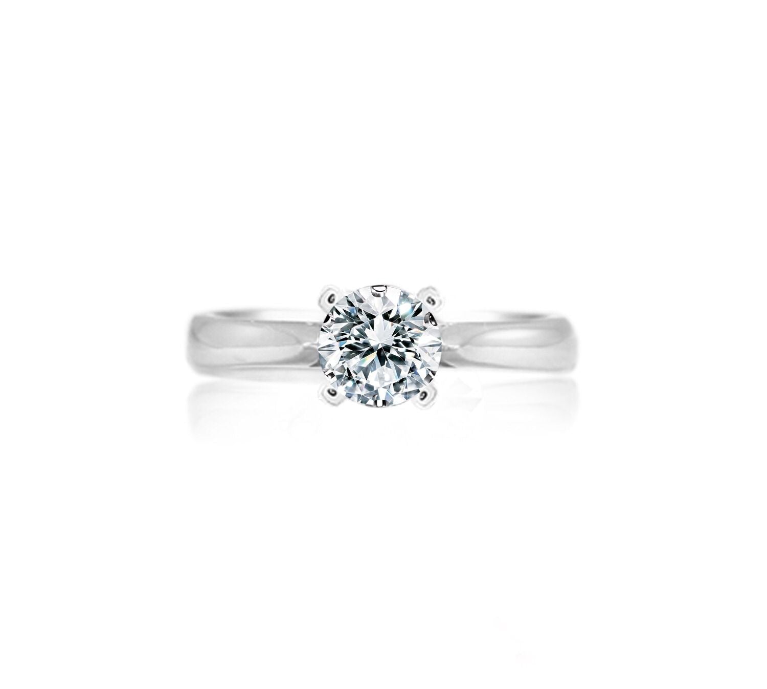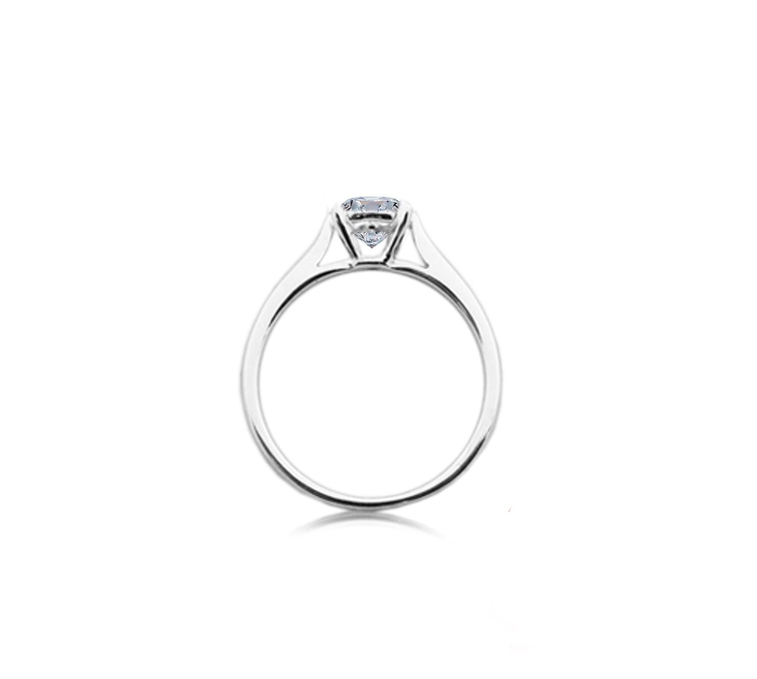 Diamond ring setting embrace by 4 prongs, in 18k gold. Can be crafted to set a centre diamond carat sizes 0.30 to 3 carat, white, rose, yellow, platinum.