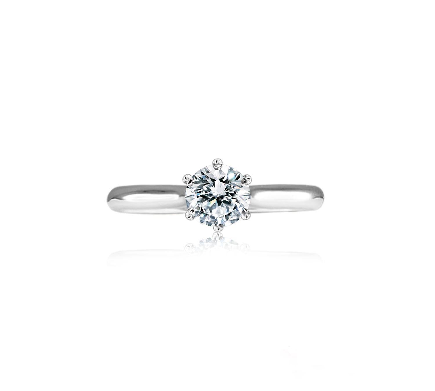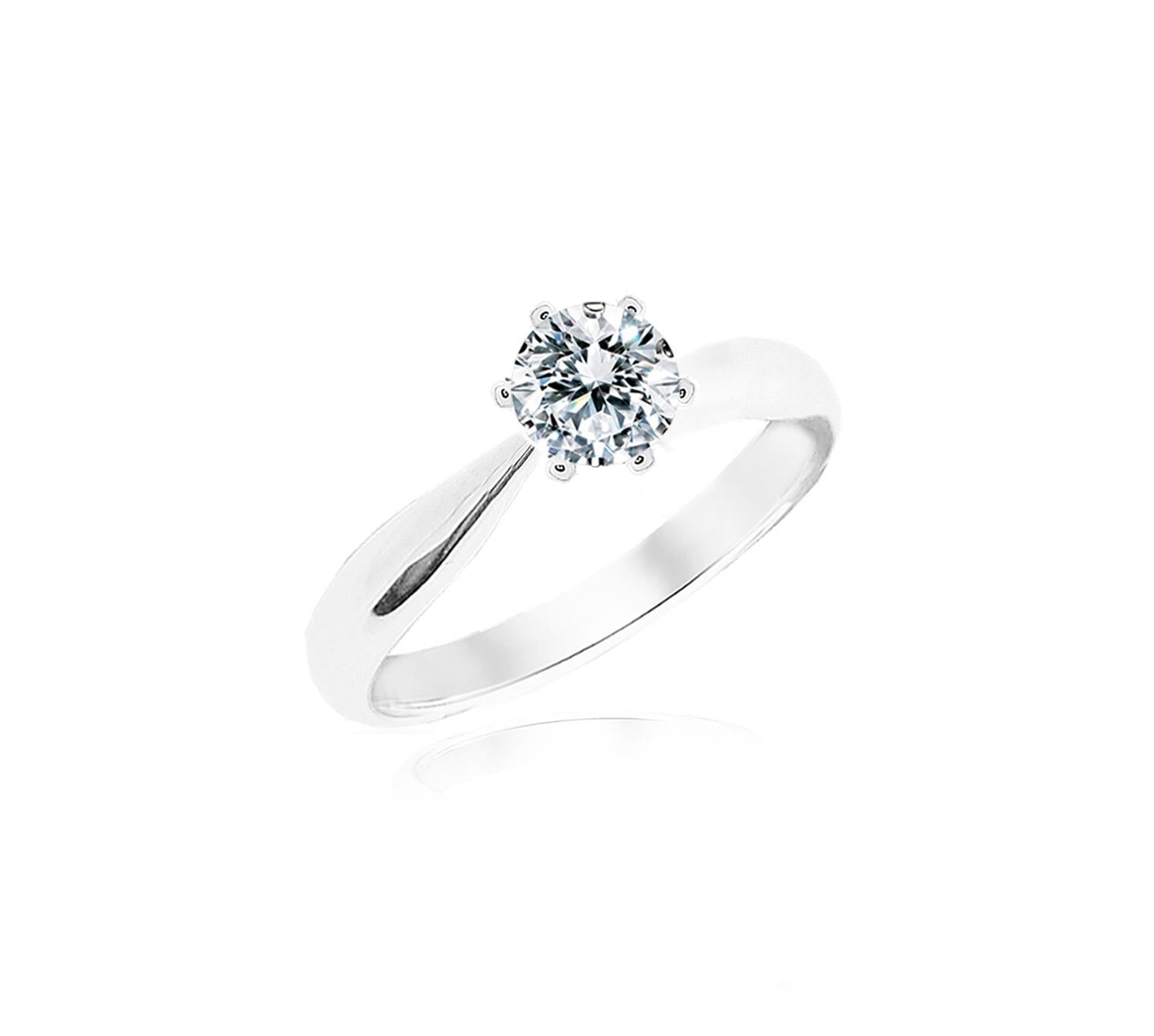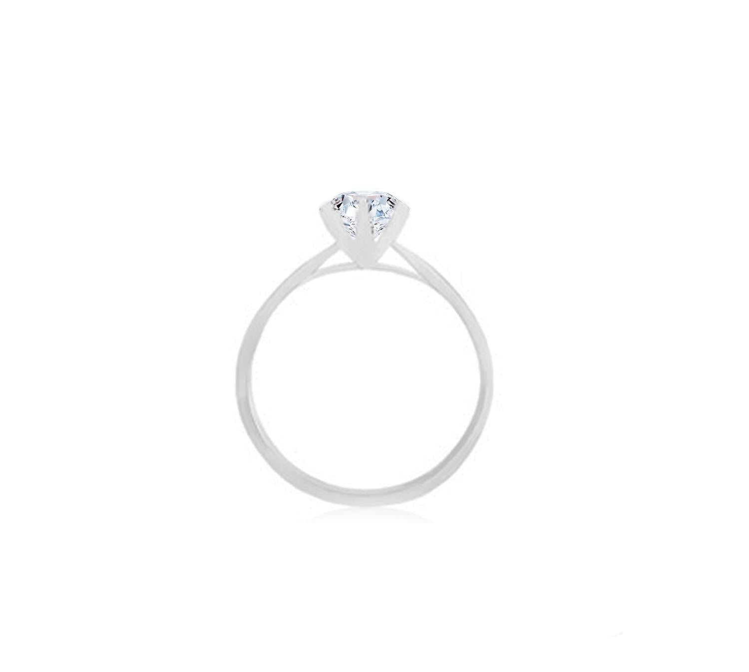 Diamond ring setting embrace by 6 prongs, in 18k gold. Can be crafted to set a centre diamond carat sizes 0.30 to 3 carat, white, rose, yellow, platinum.