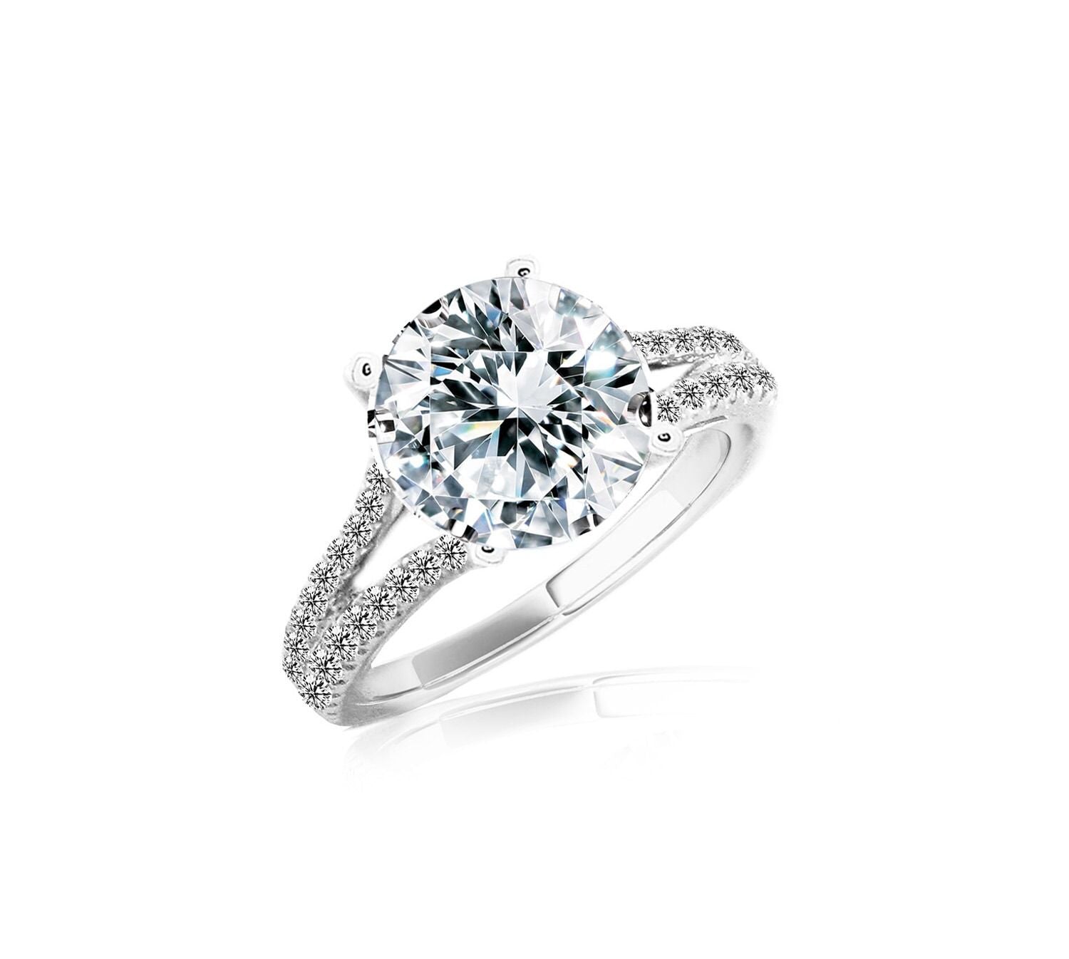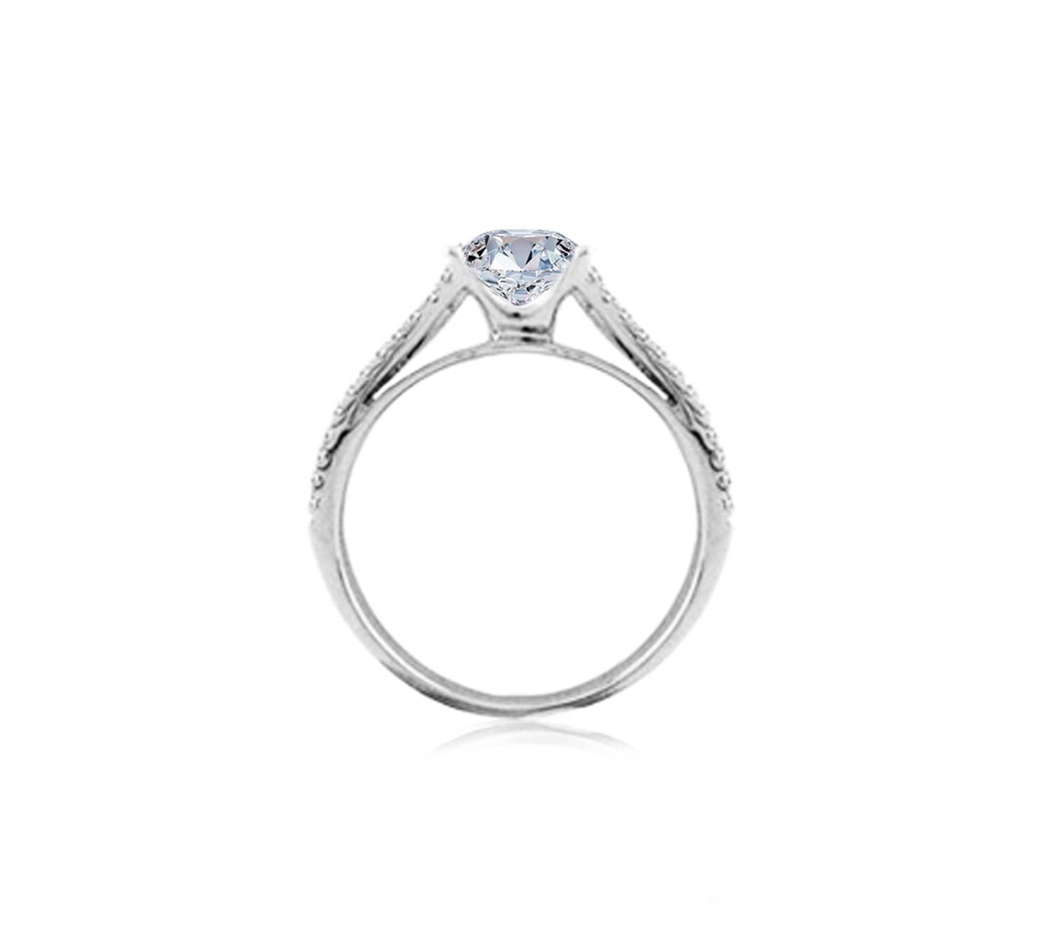 This embrace extravagant engagement ring embraced by 4 prongs, enhanced with 48 round brilliant diamonds est 0.187 carat in 18k gold. Can be crafted to set a centre diamond carat sizes 0.30 to 3ct, white, rose, yellow, platinum. (Embrace Collection)