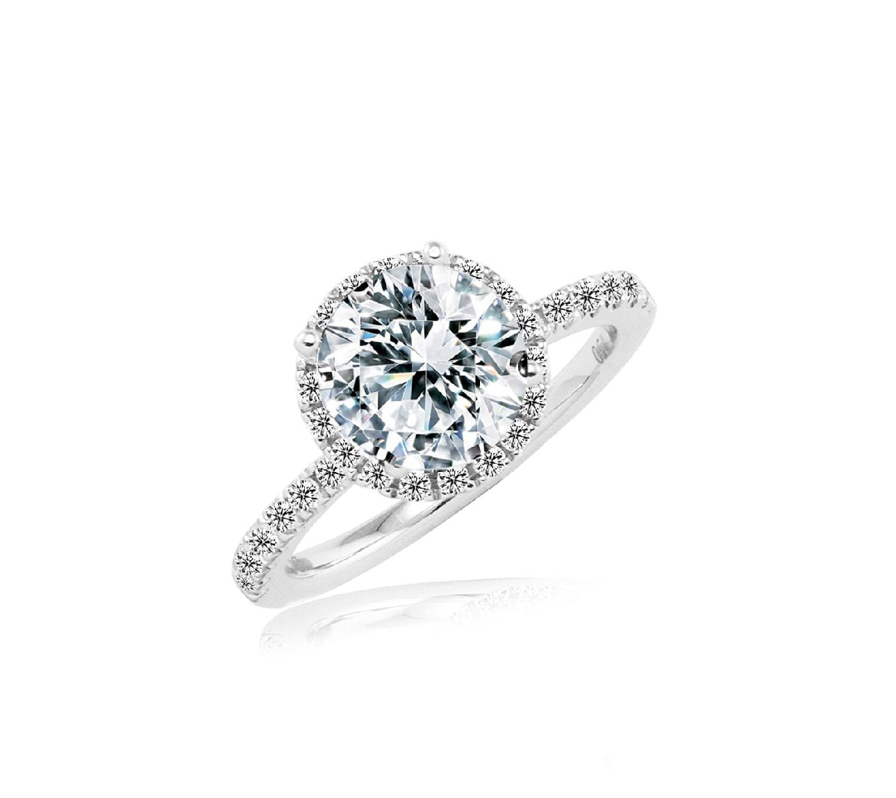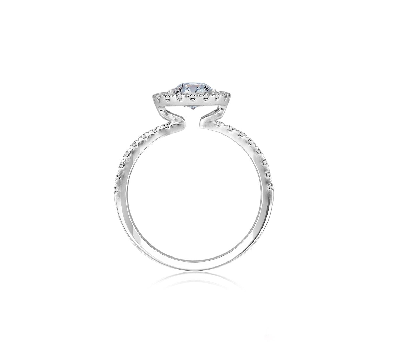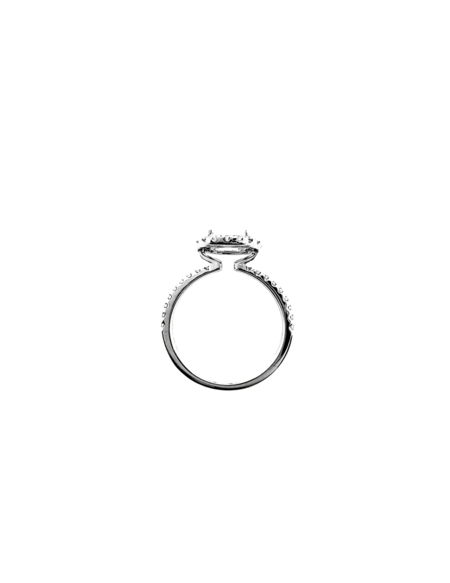 Diamond ring setting embraced by 4 prongs scintillating with 36 round brilliant diamonds 0.24 carat in 18k gold, white. Can be crafted to set a centre diamond sizes 0.30 to 3ct, white, rose, yellow, platinum. (RCX557)