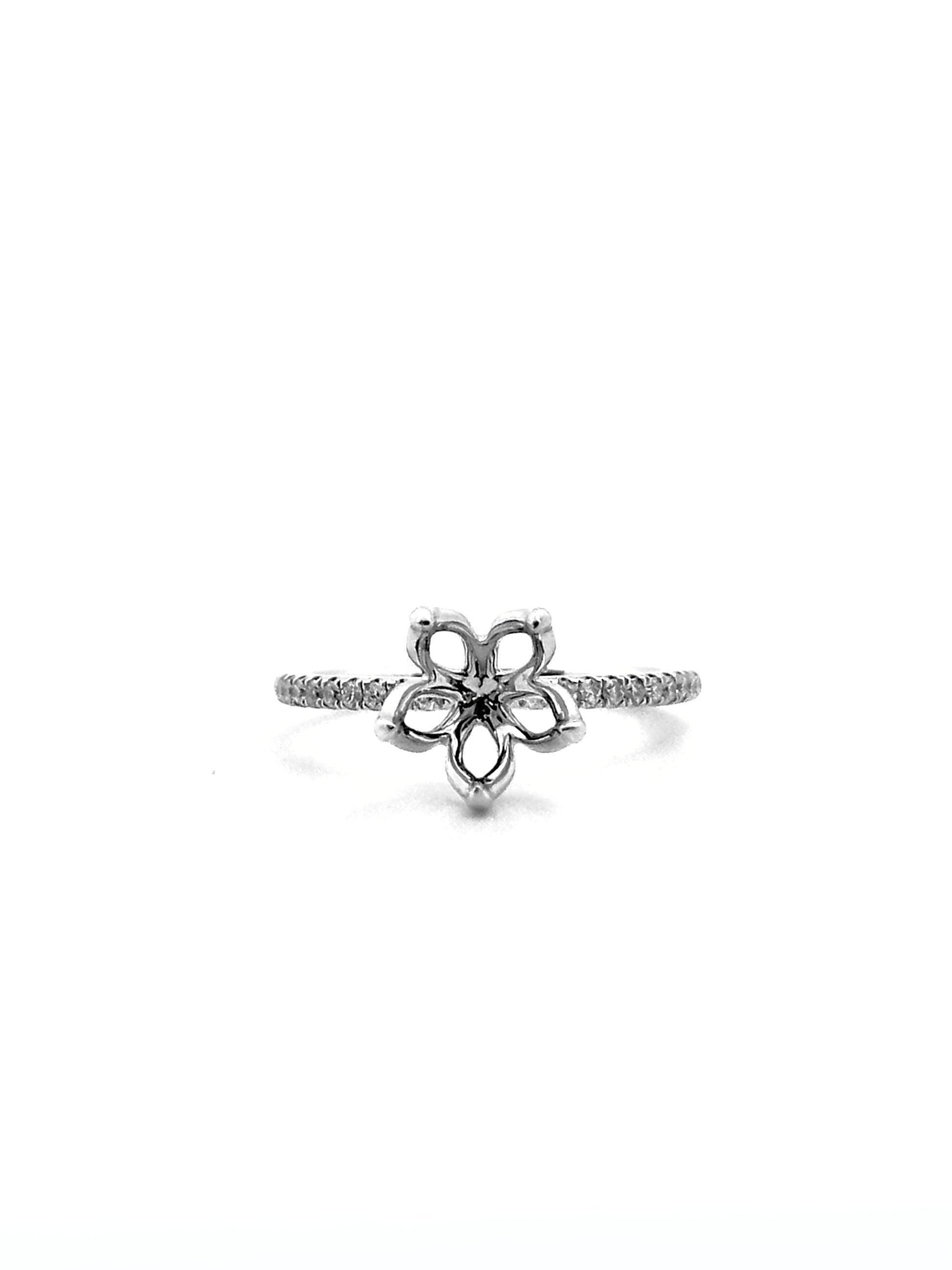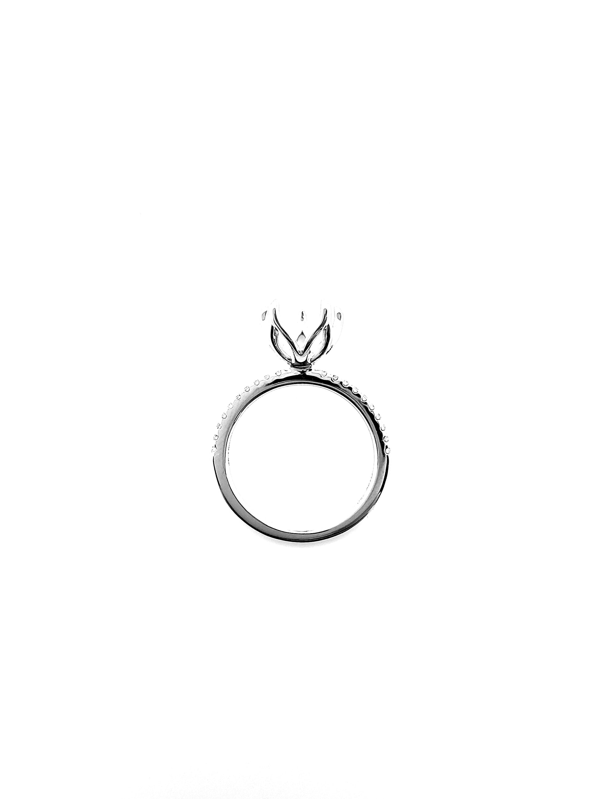 Diamond ring pavé setting embraced by 5 tulip prongs, enhanced with 20 round brilliant diamonds est 0.12ct. Can be crafted to set a center diamond carat sizes 0.30 to 3ct, white, rose, yellow, platinum. (RCX608)