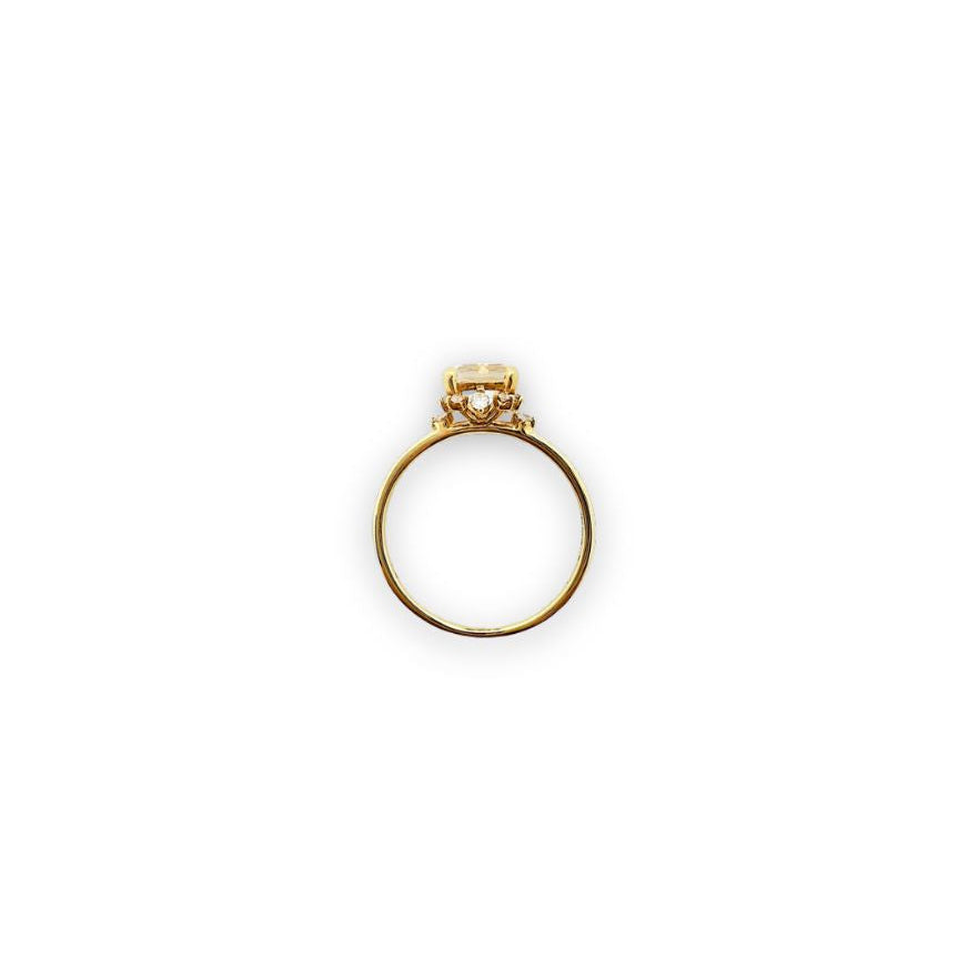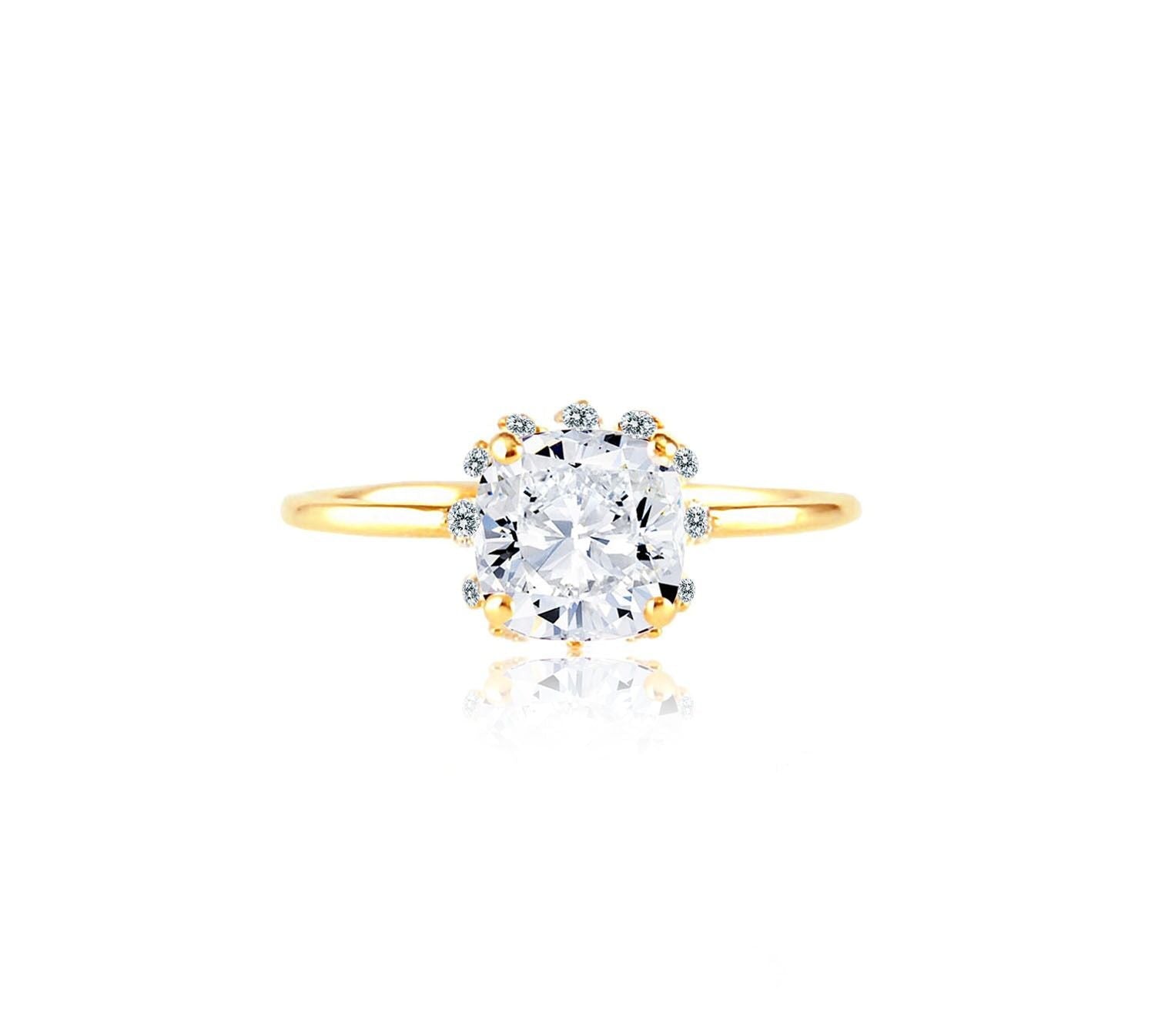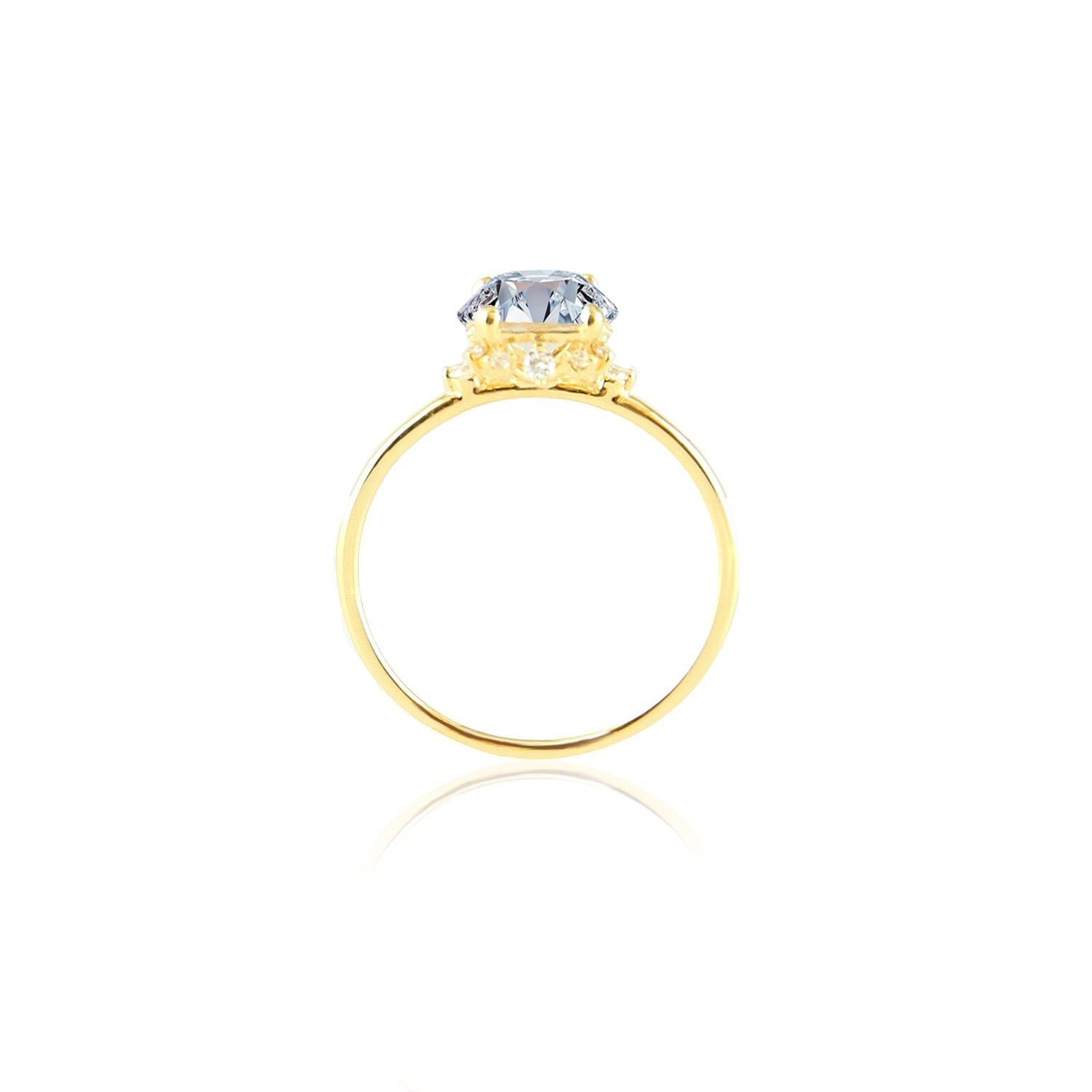 Diamond ring setting embraced by 4 prongs, enhanced with 12 round brilliant diamonds est 0.08ct in 18k yellow gold. Can be crafted to set a center diamond carat sizes 0.30 to 3ct, white, rose, yellow, platinum.