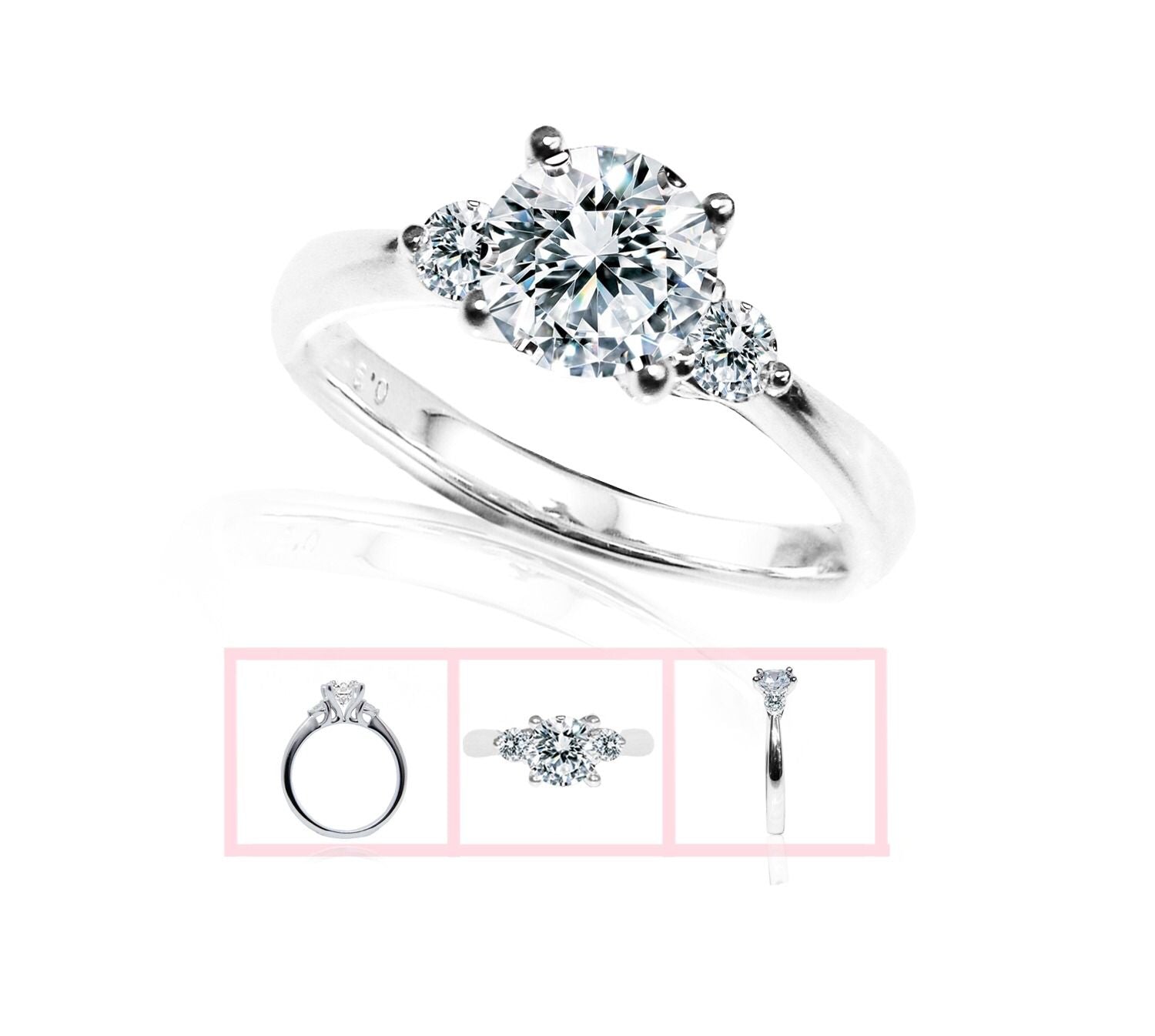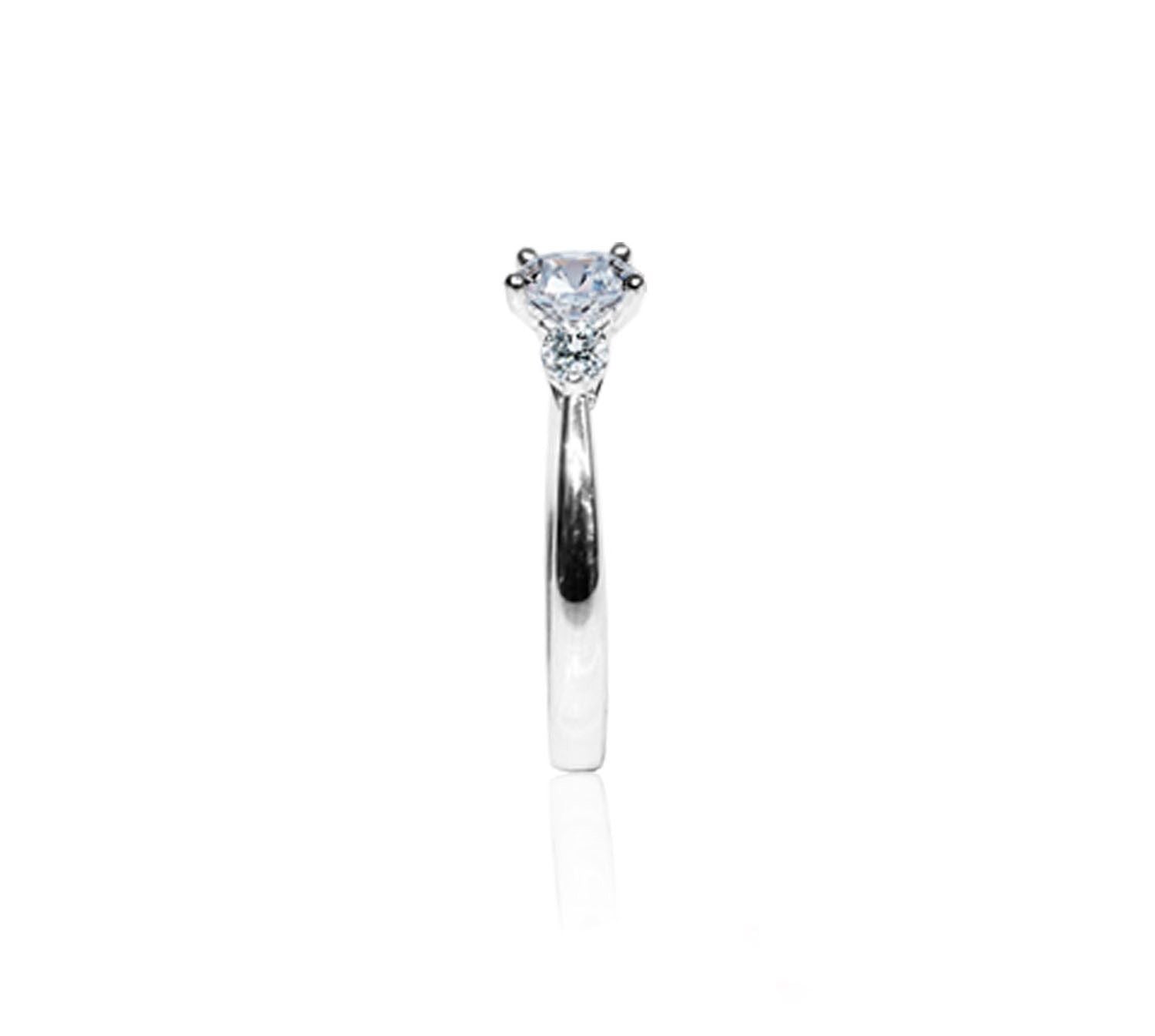 Diamond ring setting enhanced with 2 round brilliant diamonds 0.16 carat in 18k gold. Can be crafted to set a centre diamond carat sizes 0.30 to 3ct, white, rose, yellow, platinum.