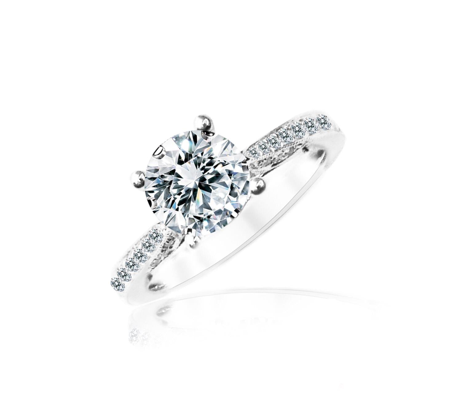 Diamond ring setting scintillating with 33 round brilliant diamonds 0.21 carat in 18k gold, white. Can be crafted to set a centre diamond carat sizes 0.30 to 3ct, white, rose, yellow, platinum. (RCX588)