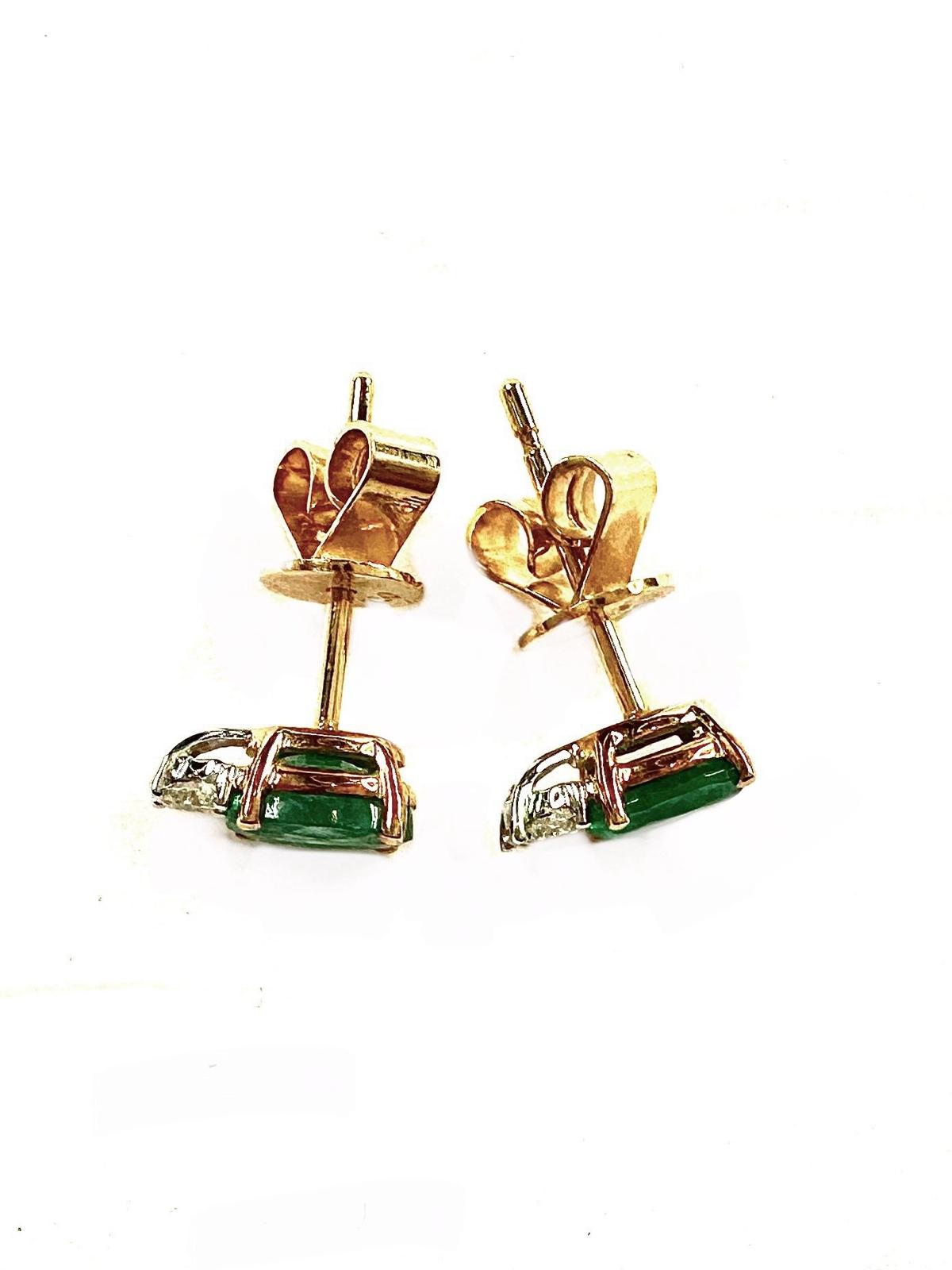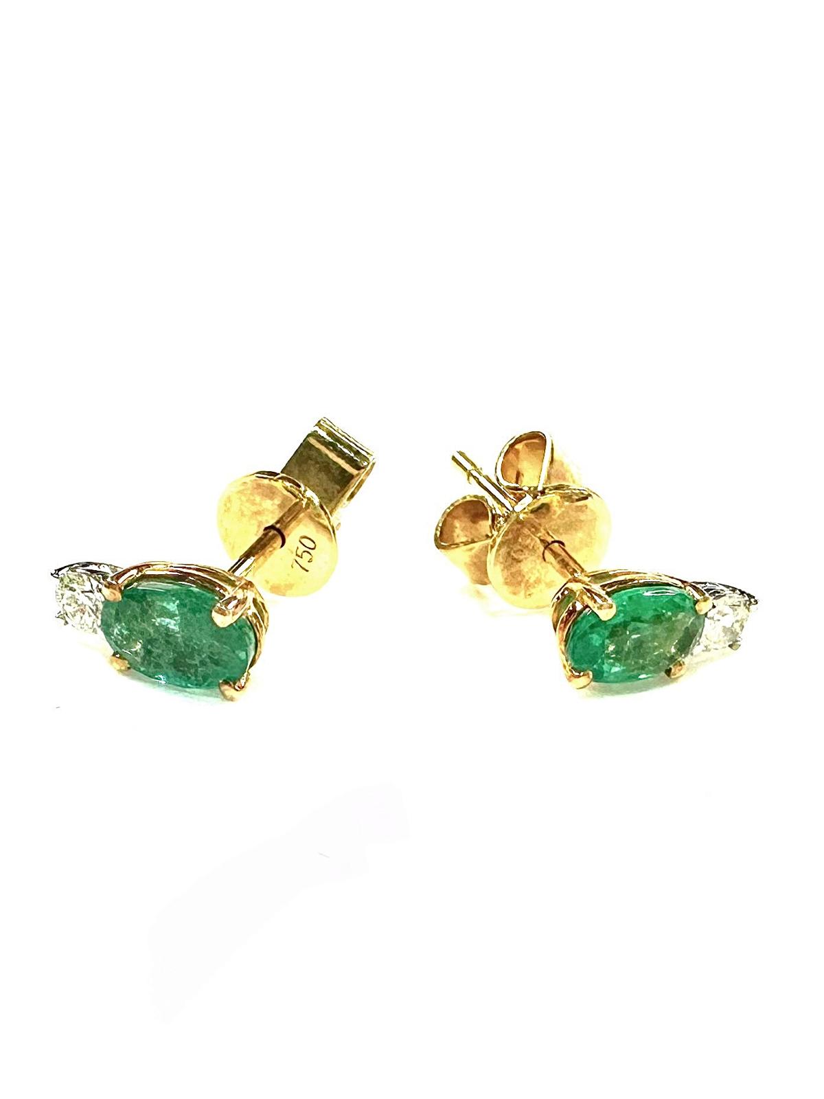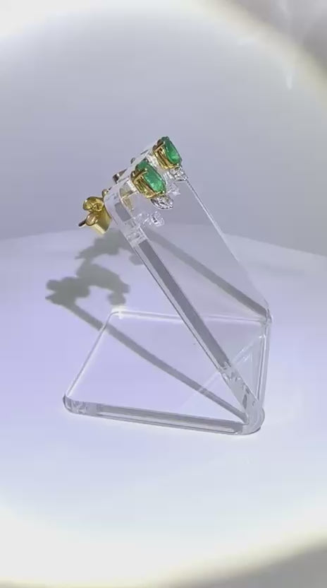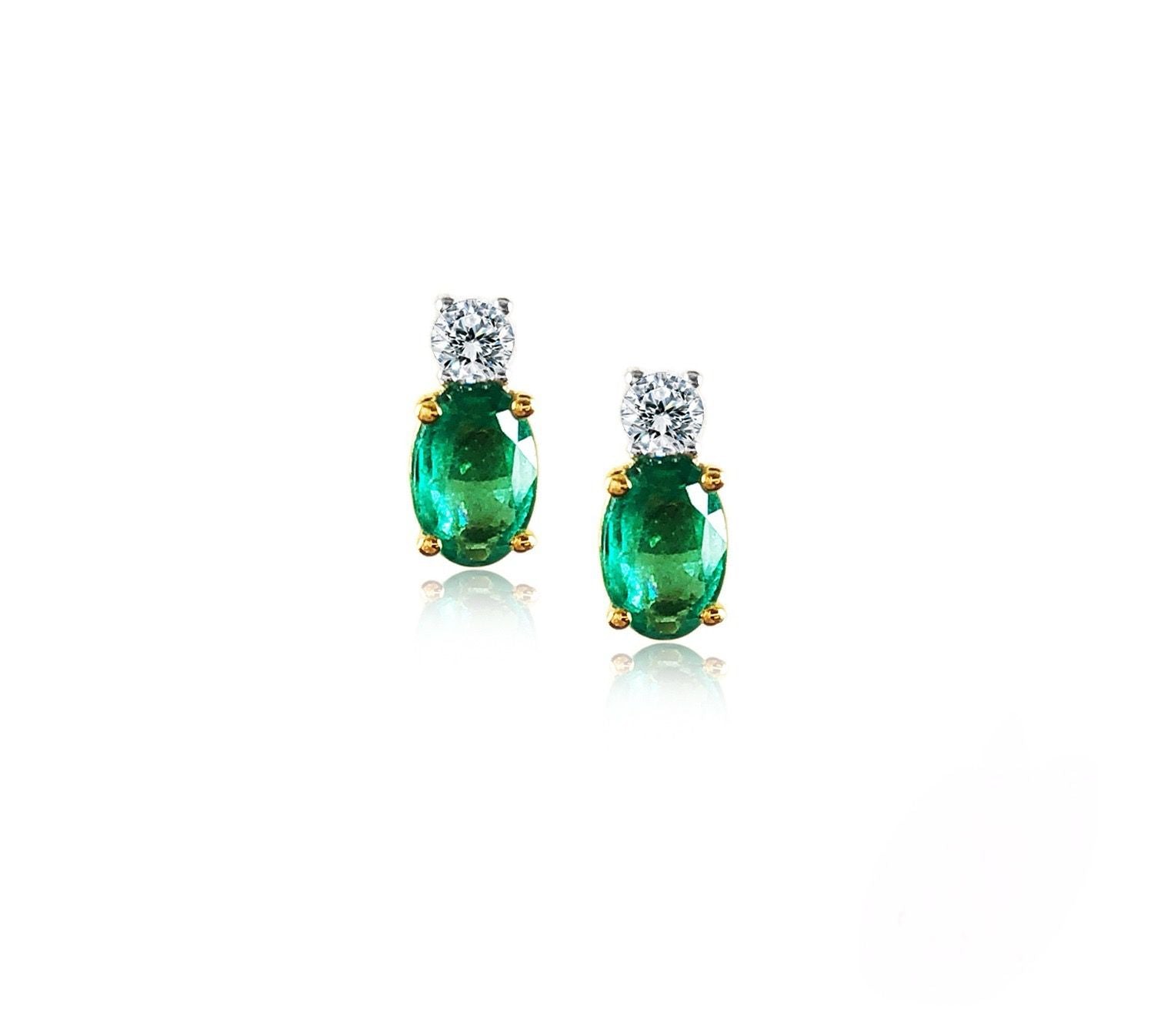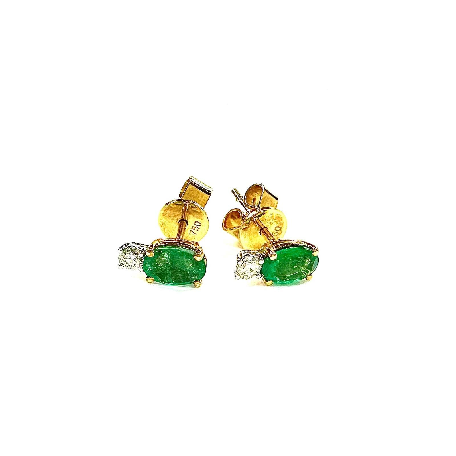Earrings with 2 oval shape emerald 0.86 carat and 2 round brilliant diamonds 0.13 carat in 18k gold, white. (18k, Emerald)