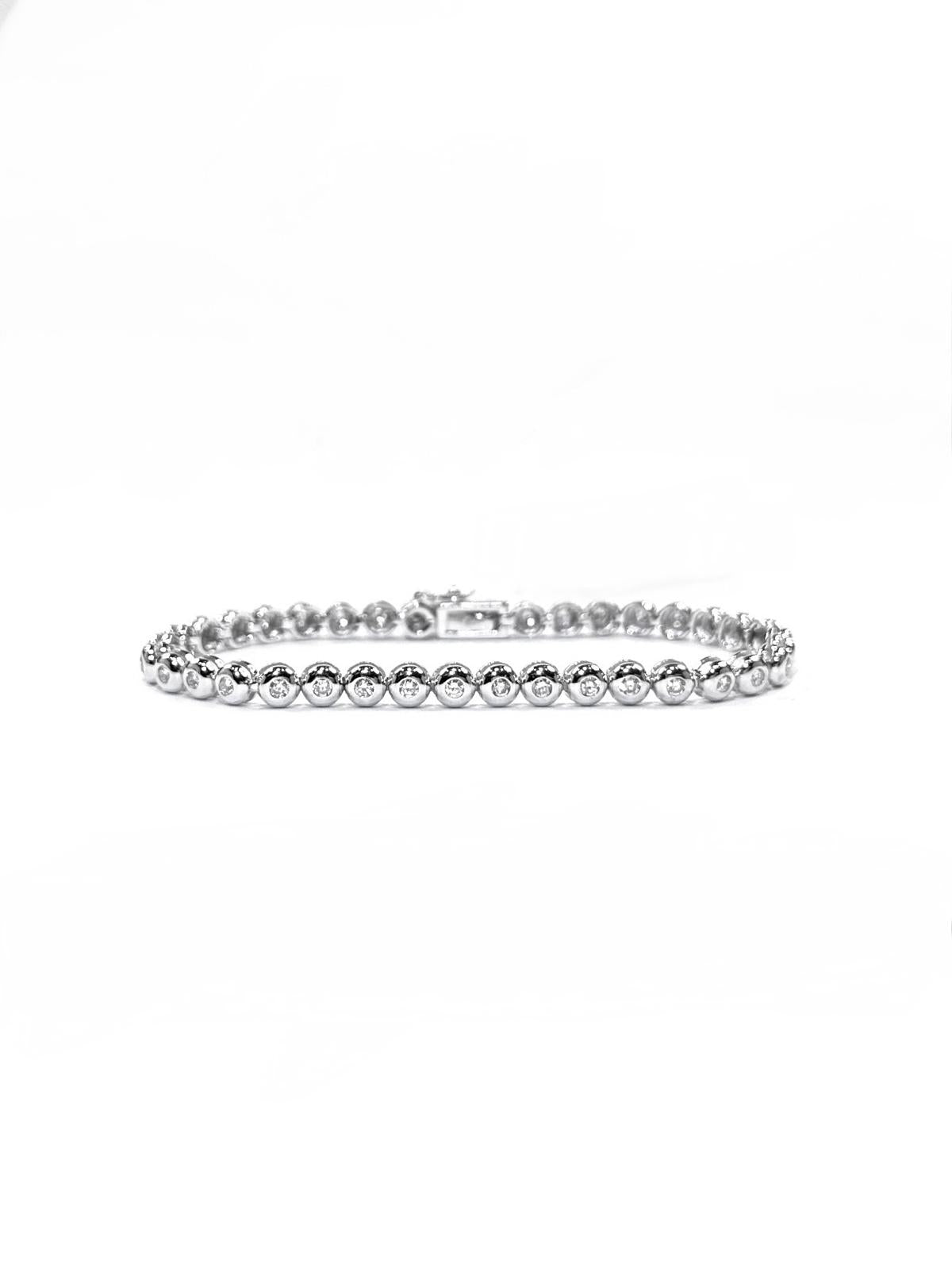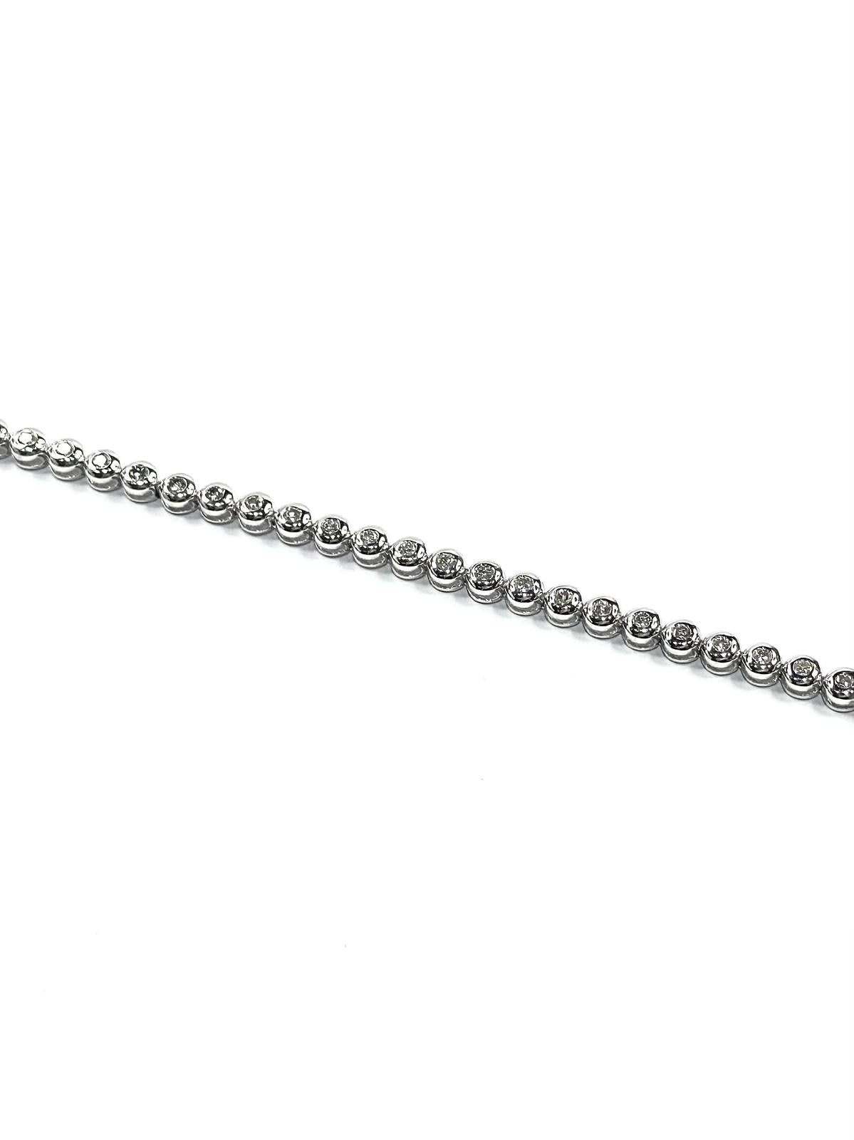 Diamond bracelet, bezel-set with a full circle of 38 round brilliant diamonds 0.902 carat in 18k gold, white. (18k, Natural)