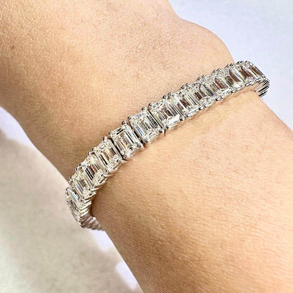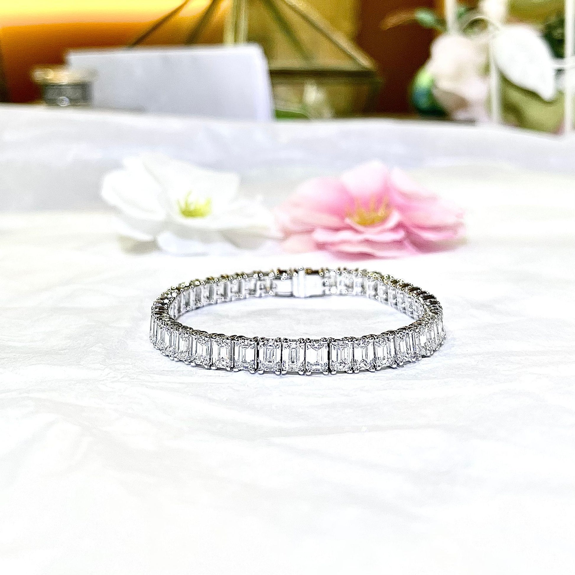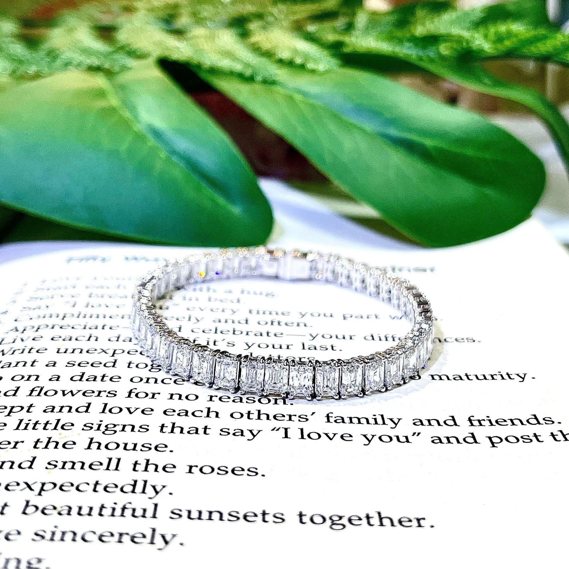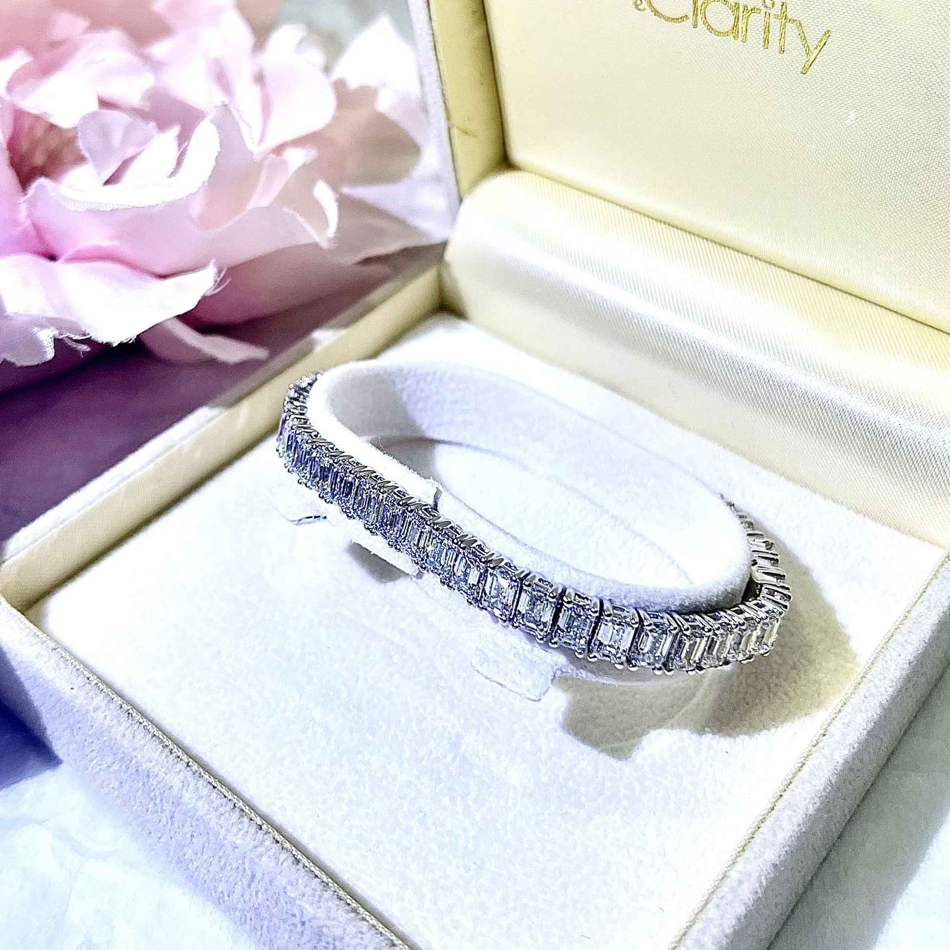 Equipped with a secure clasp, the Emerald Cut Diamond Eternity Bracelet offers both elegance and durability, ensuring a comfortable fit while maintaining sophistication.