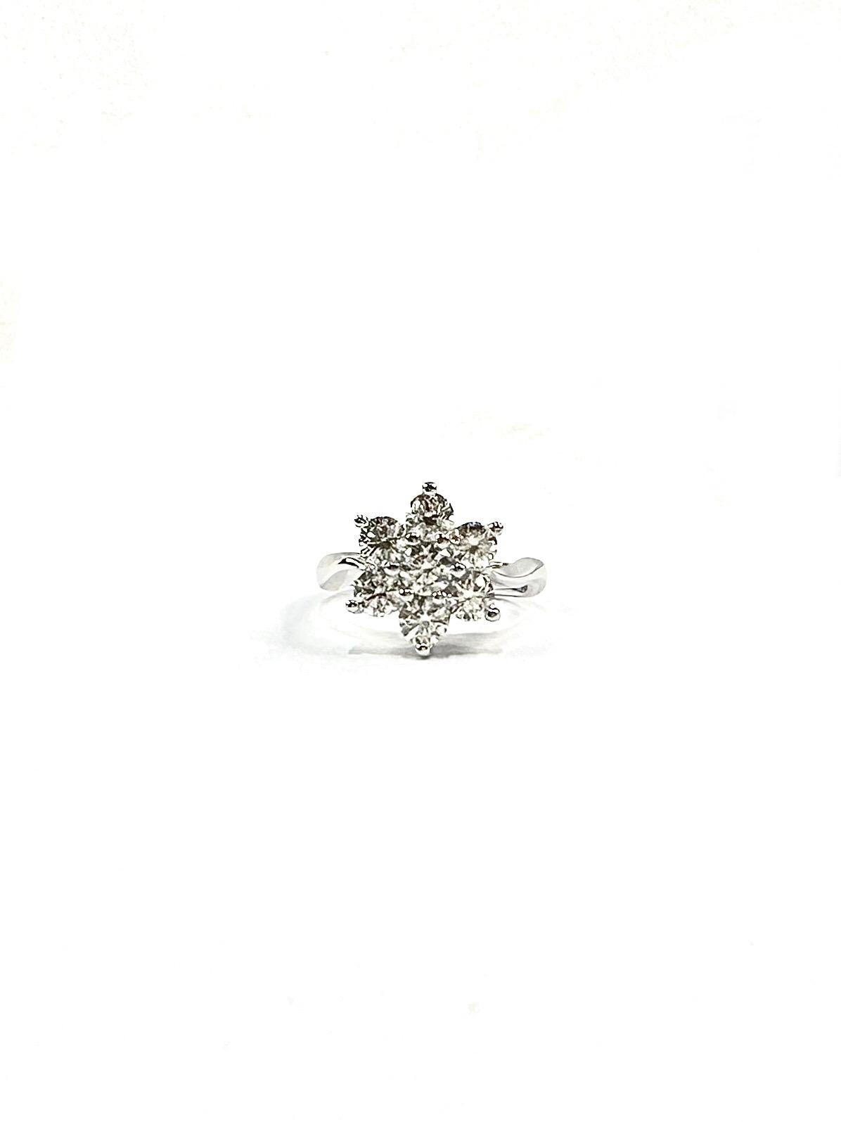 Diamond ring with 1 round brilliant diamond 0.307 carat and 6 round brilliant diamonds 1.553 carat in 18k gold, white. (18k, Natural)