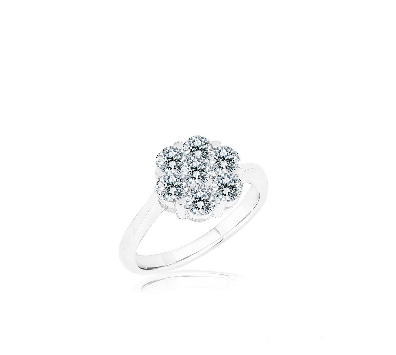 Diamond ring with 1 round brilliant diamond 0.147 carat and 6 round brilliant diamonds 0.801 carat in 18k gold, white. (18k, Natural)