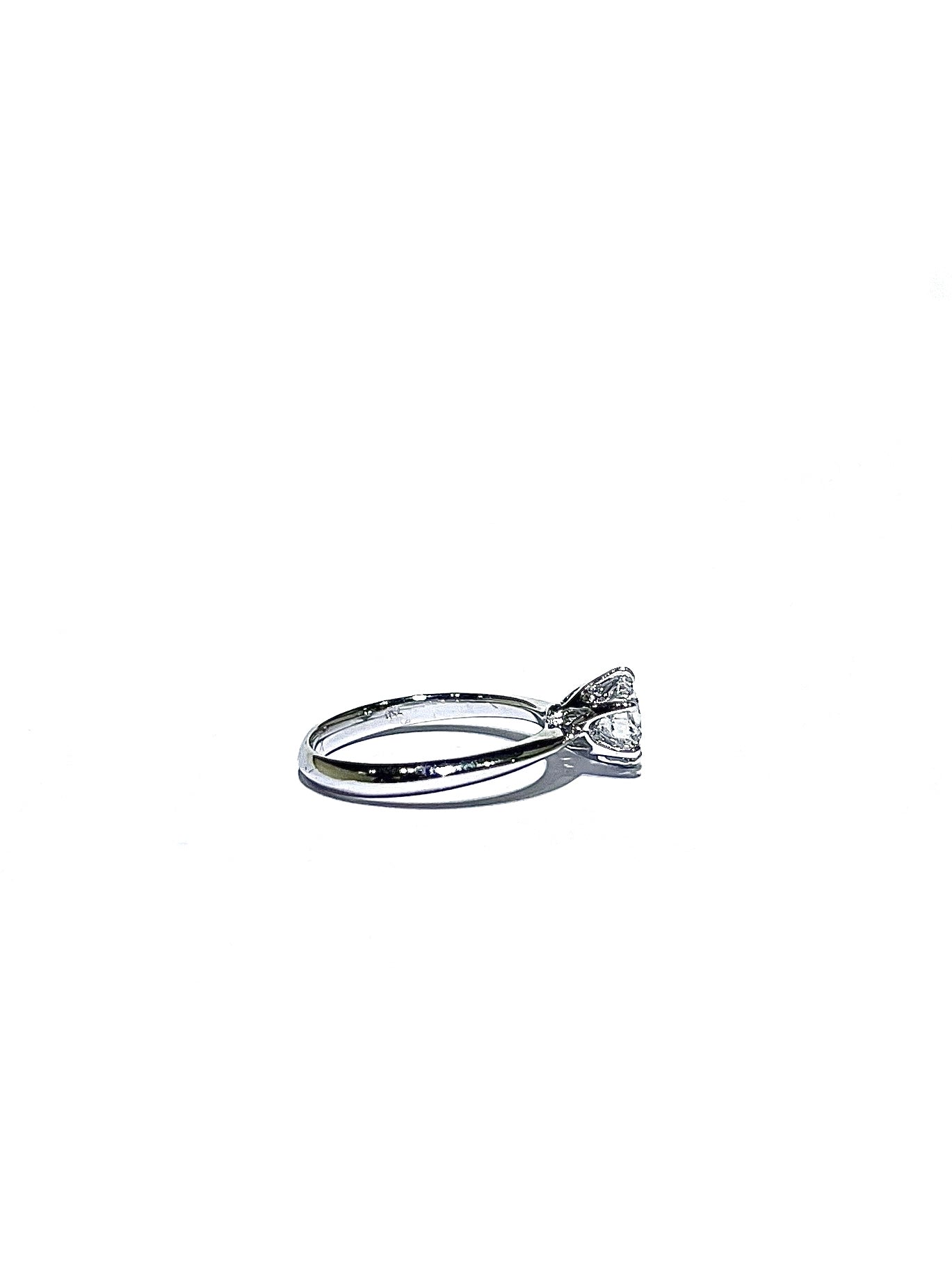 Delicate yet full of brilliance, this ring features a 0.50 carat round brilliant diamond set in a petite, softly contoured design. The minimal setting draws attention to the center stone, allowing its sparkle and symmetry to shine with quiet confidence. Understated and timeless, this piece is crafted for those who appreciate grace in its purest form. A symbol of elegance, intention, and enduring beauty.