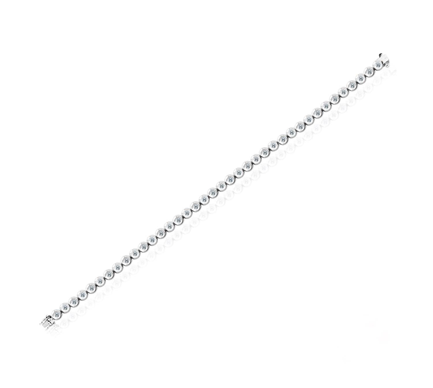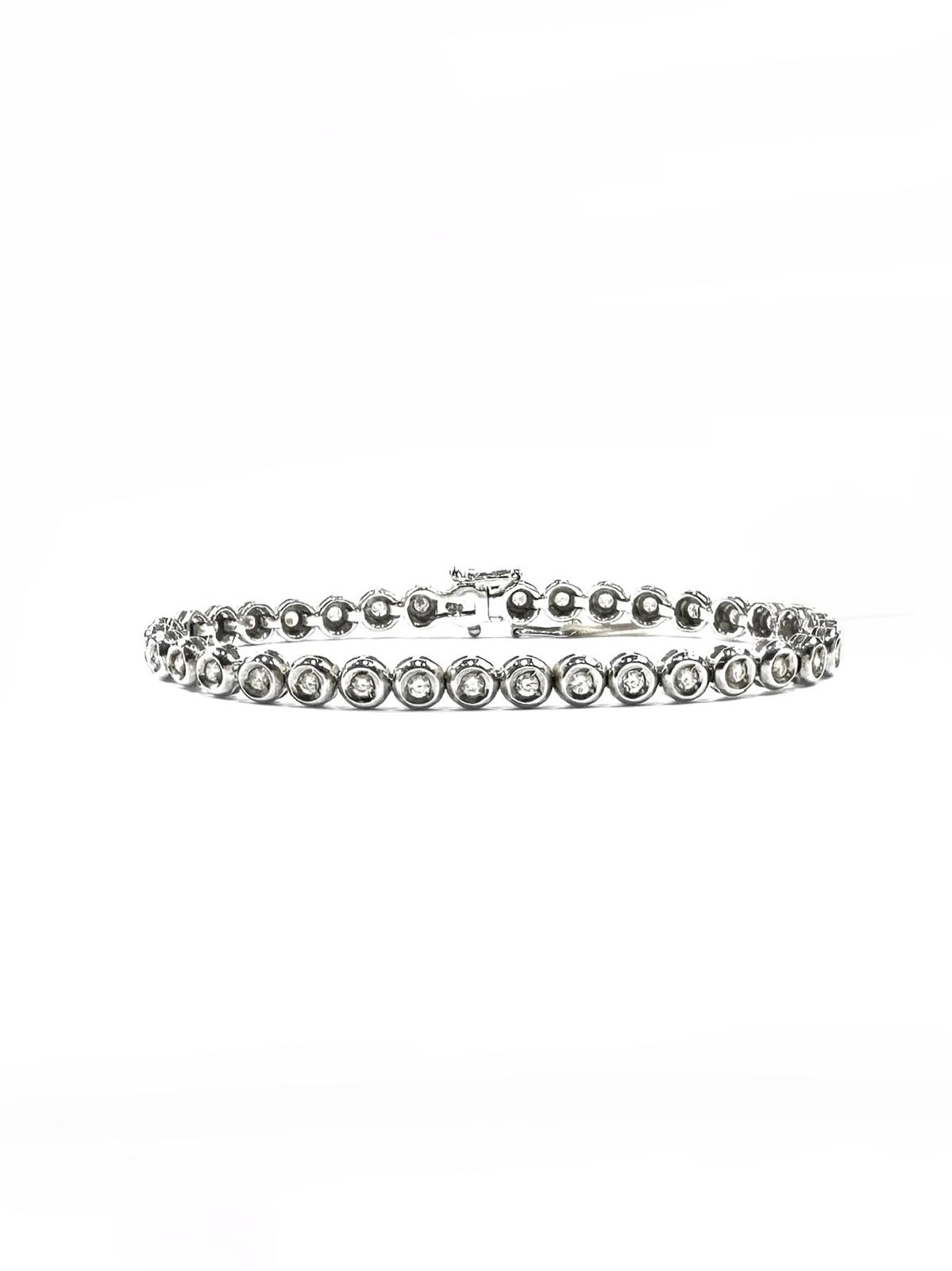 Diamond bracelet, bezel-set with 38 round brilliant diamonds 1.35 carat in 18k gold, white. (18k, Natural)