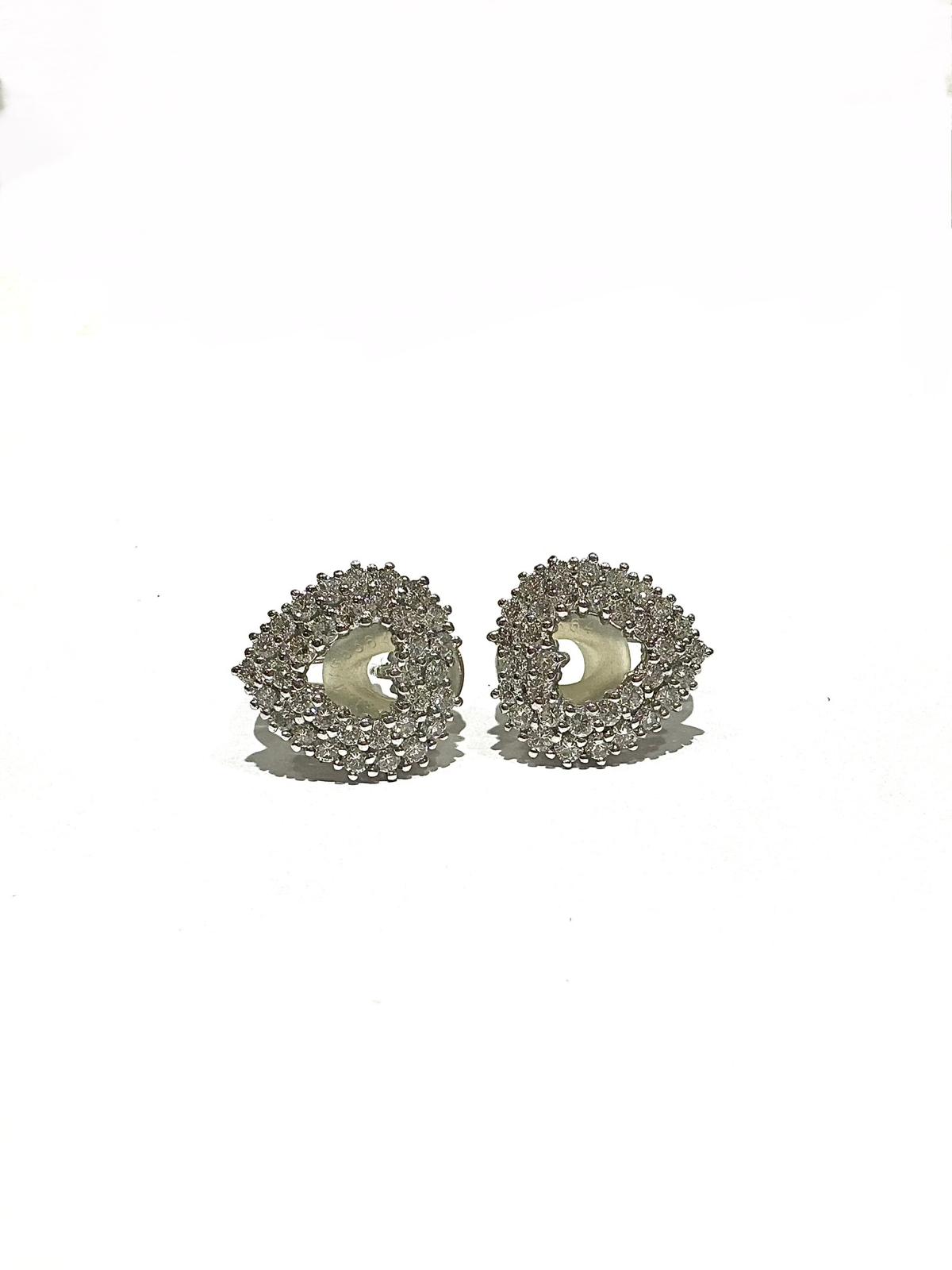 Diamond earrings with 68 round brilliant diamonds 1.48 carat in 18k gold, white. (18k, Natural)