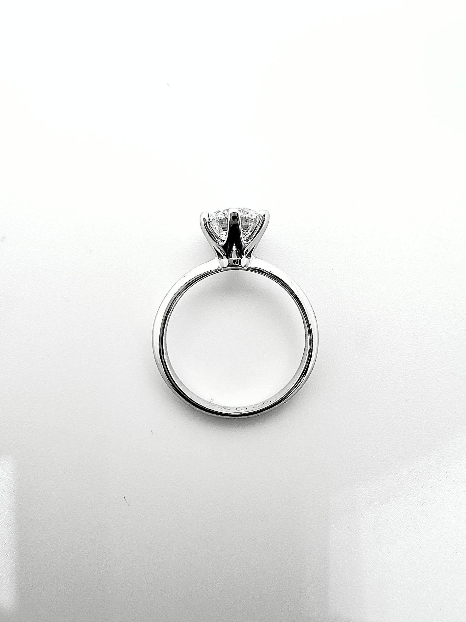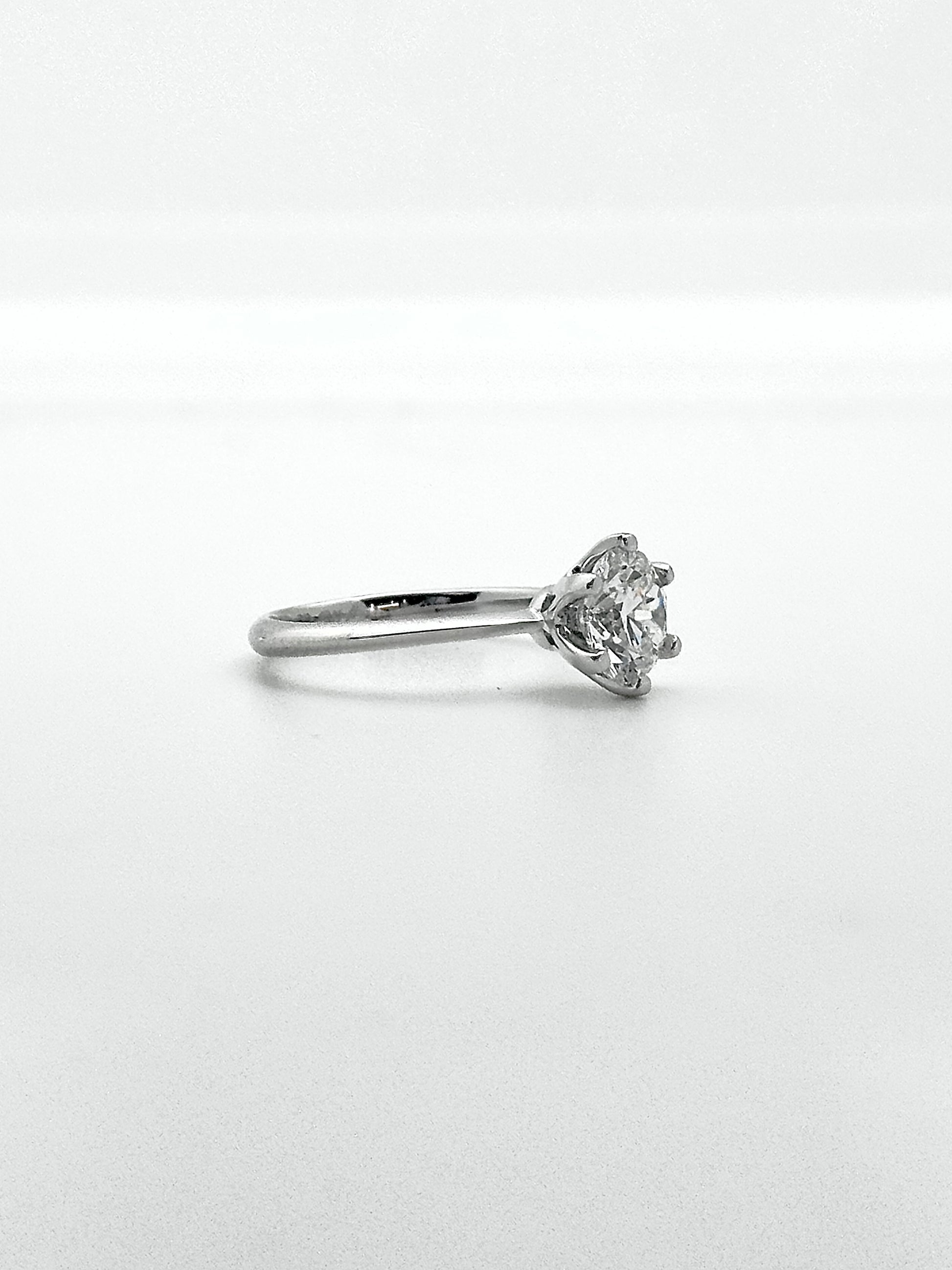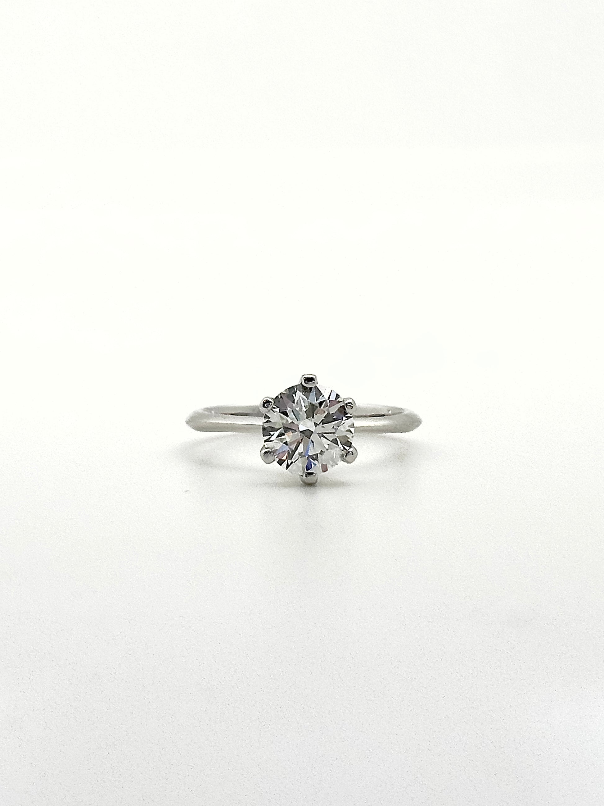 Gracefully understated, this ring features a 1.2-carat colorless round brilliant diamond, selected for its exceptional clarity and timeless appeal. Set in a classic design with refined proportions, the center stone takes focus, allowing its natural brilliance to shine with quiet confidence.