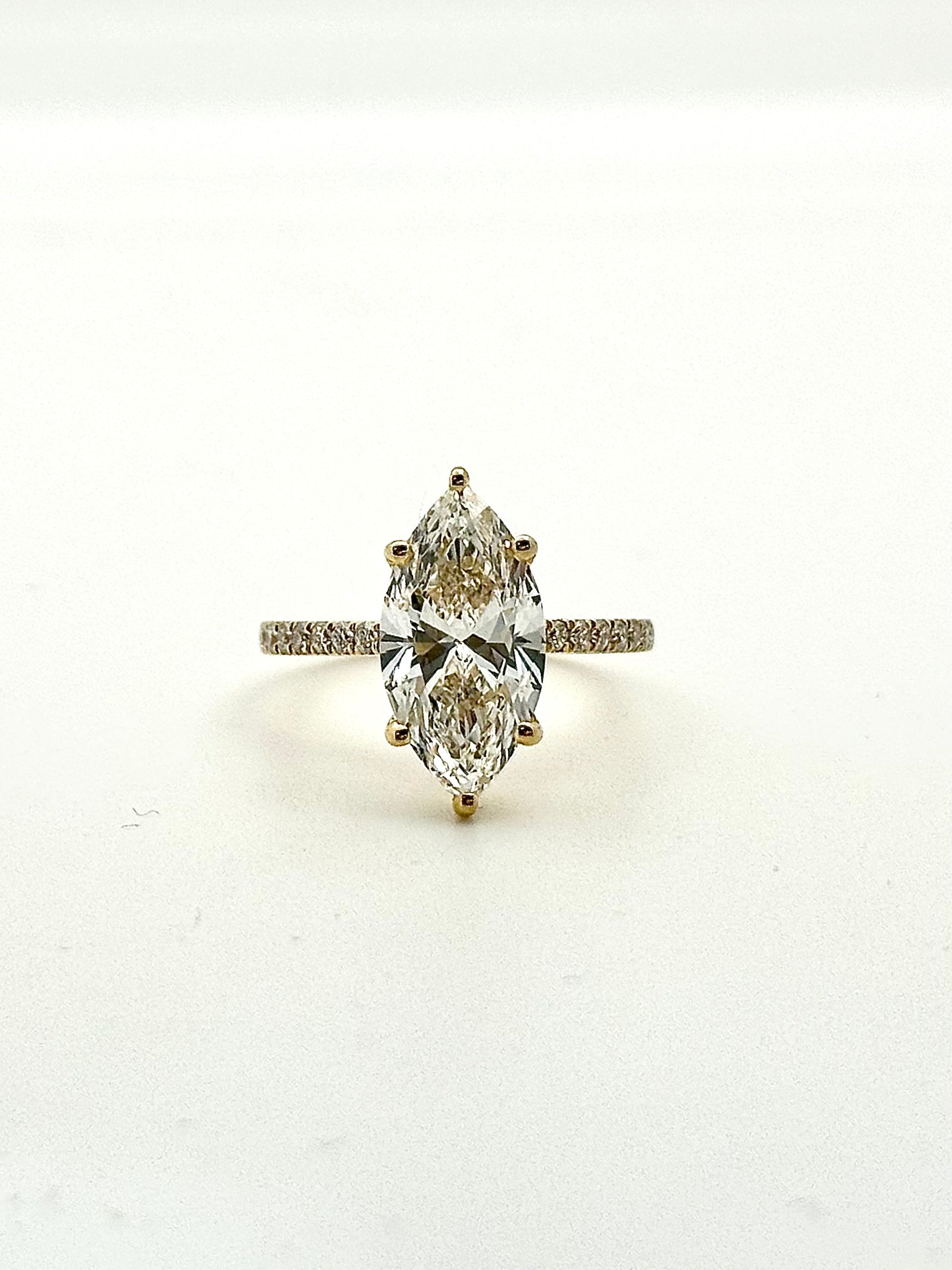 Elegant and distinctive, this ring centres on a 1.2-carat colorless marquise brilliant diamond, admired for its elongated form and graceful presence. Set within a classic design, the marquise shape draws the eye with its soft curves and refined symmetry.