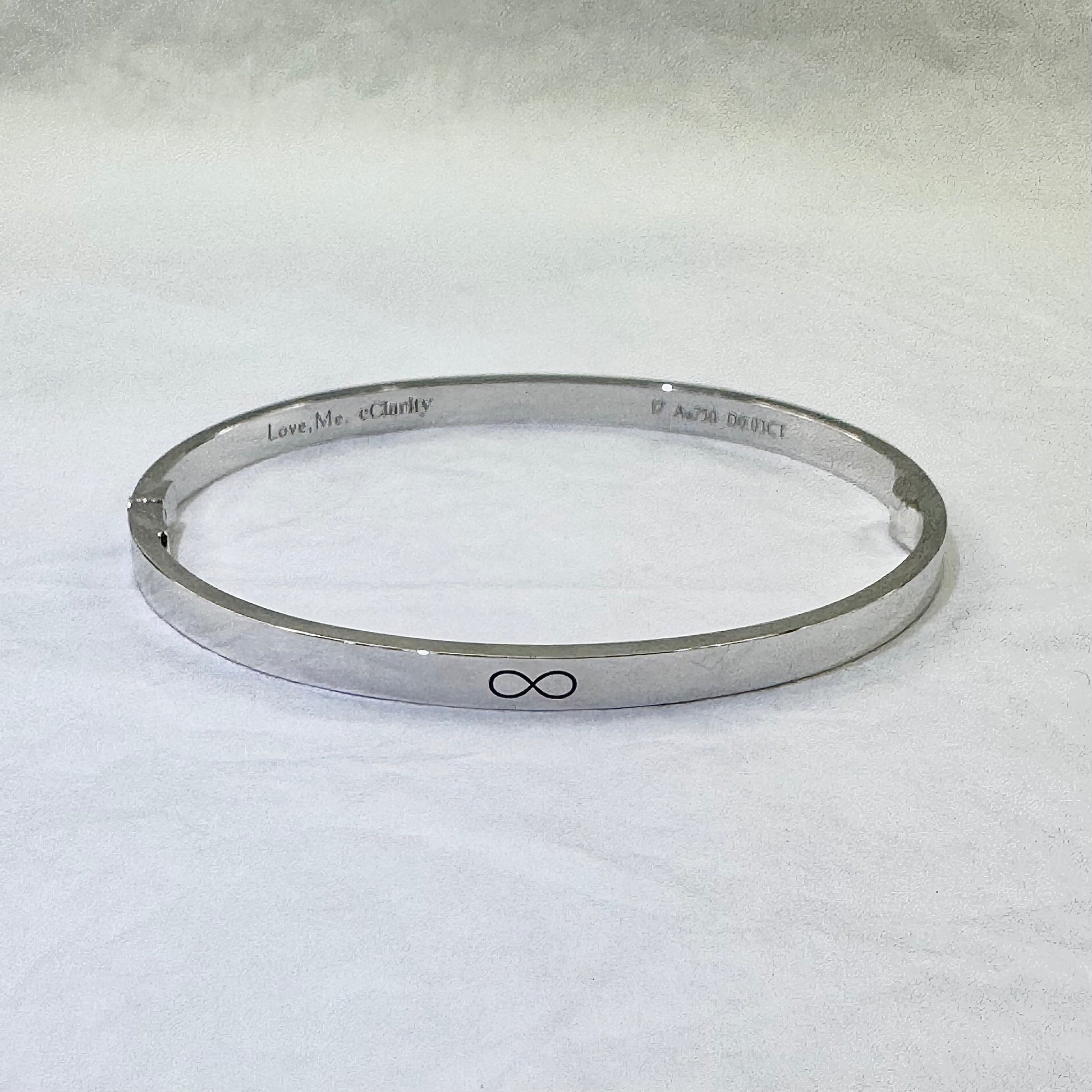 eClarity continues to empower self-love, loving yourself first before loving others. Each Love, Me Bangle weighs close to 20g in pure 750 gold. It is fastened with the option of using a screw lock or an automatic hinge lock.