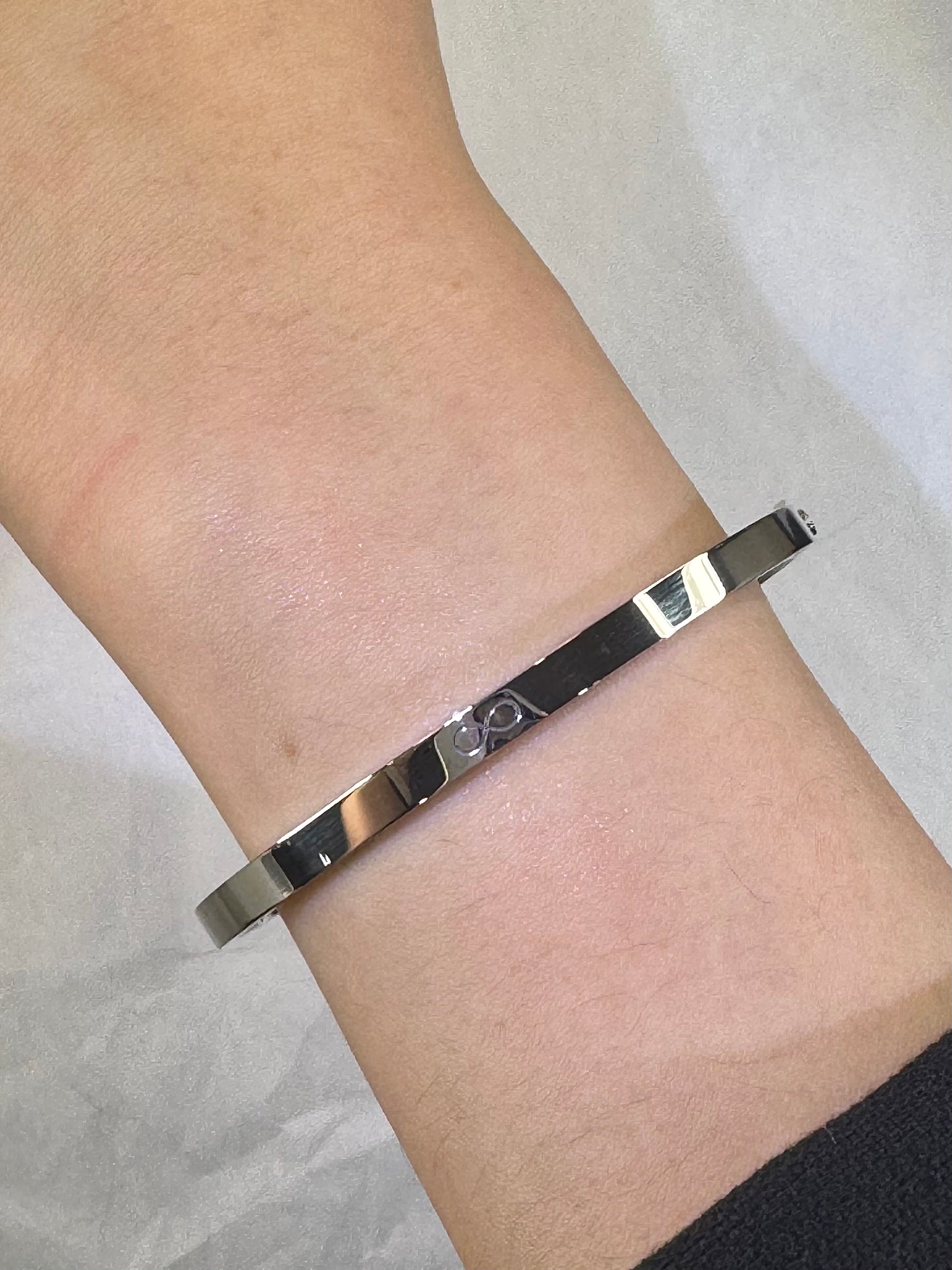 To determine the size of your Love, Me Bangle, measure your wrist, adding 1cm to your size for a tighter fit, or 2cm for a loser fit.