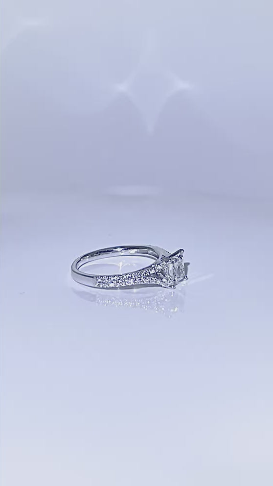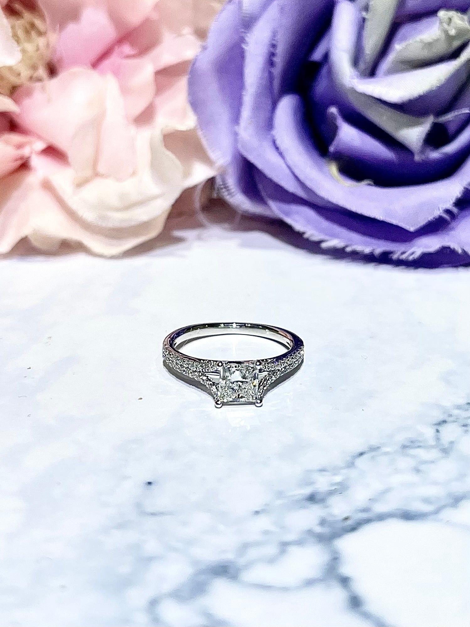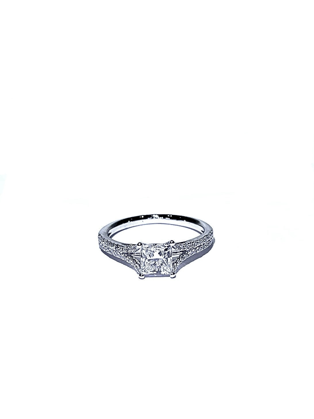 A modern expression of timeless elegance, this ring features a 0.80 carat princess-cut diamond set in a refined embrace design. The structured silhouette balances strength with grace, allowing the diamond’s clean lines and fire to take center stage. Bold, refined, and deeply personal, it is a ring that celebrates clarity, commitment, and contemporary beauty.