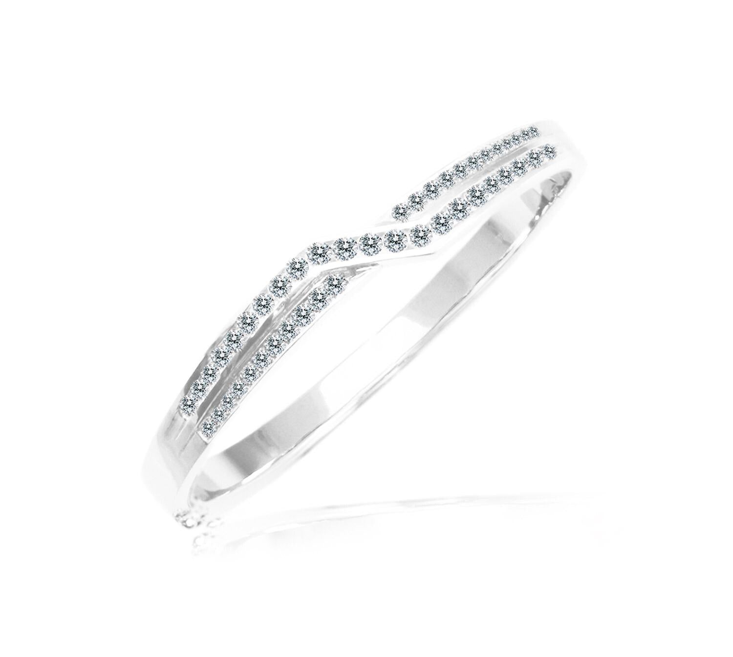 Diamond bangle with 45 round brilliant diamonds 1.405 carat in 18k gold, white. (18k, Natural)