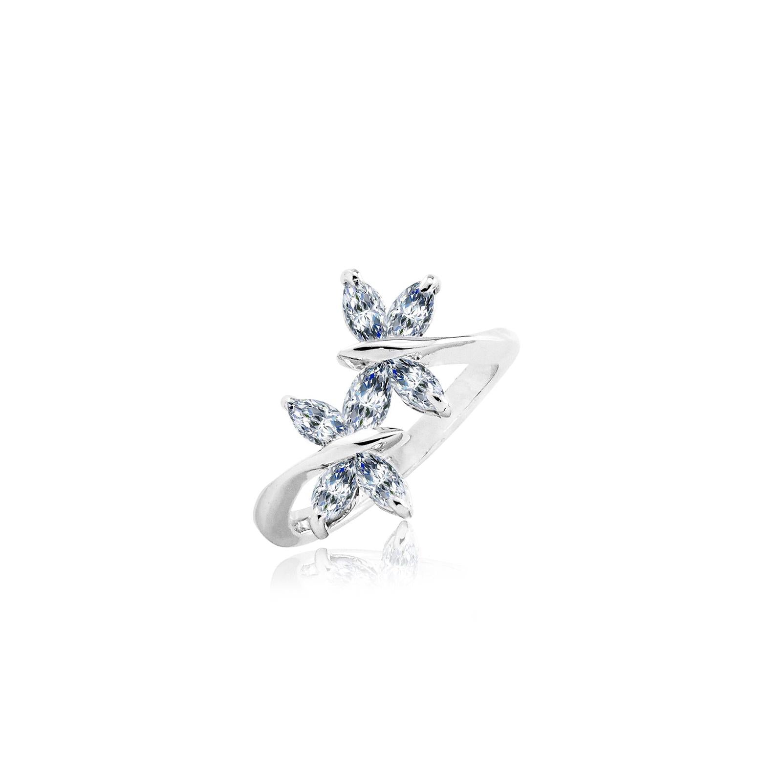 Diamond ring with 7 marquise shaped diamonds 0.71 carat in 18k gold, white. (18k, Natural)