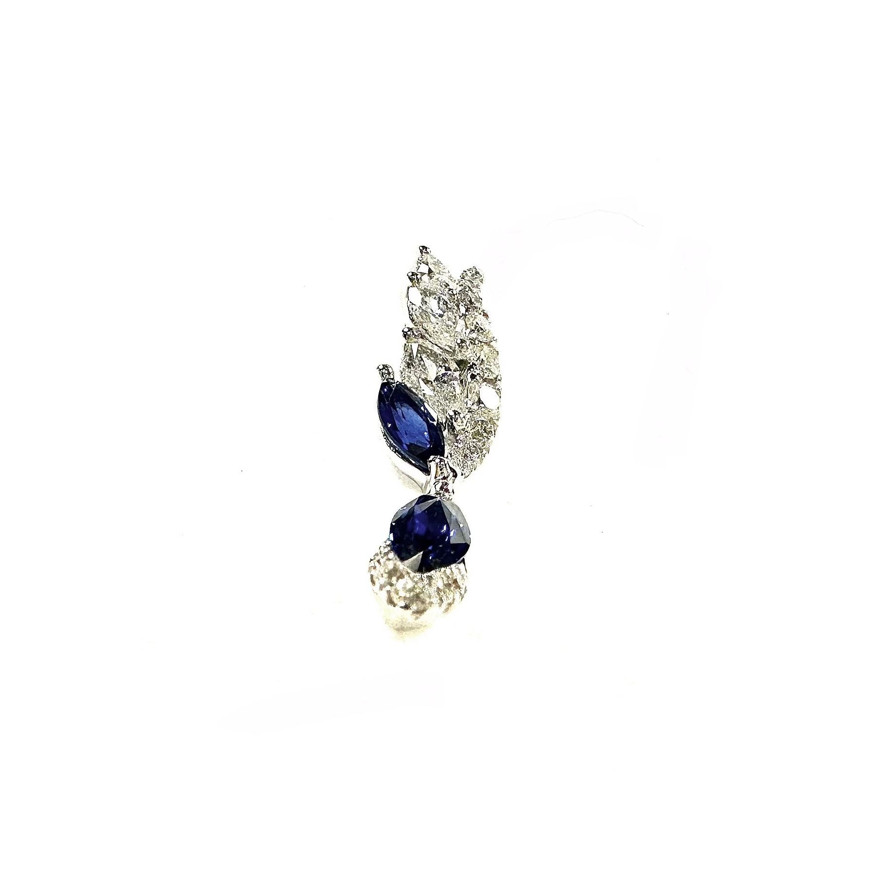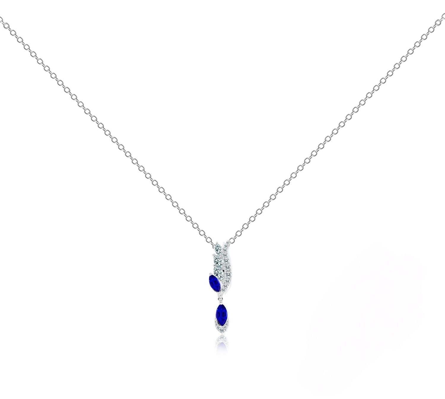 Diamond pendant with 17 round brilliant diamonds 0.16 carat, 2 marquise blue sapphire 0.41 carat and 3 marquise diamonds 0.23 carat in 18k gold, white. (18k, Sapphire)