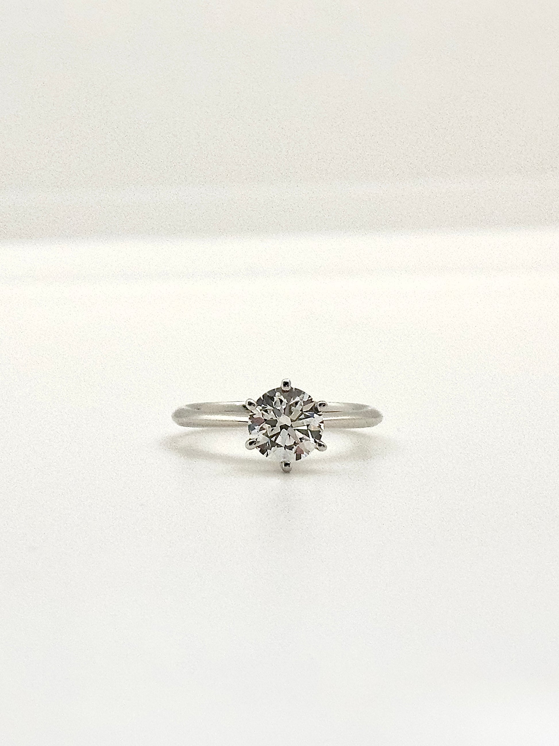 A timeless classic with refined proportions, this ring highlights a 1.00-carat round brilliant diamond that captures pure brilliance from every angle. The smooth, elegant band draws focus to the luminous center, creating a perfect balance of simplicity and sophistication. Designed for those who value understated beauty, it’s a celebration of enduring elegance.