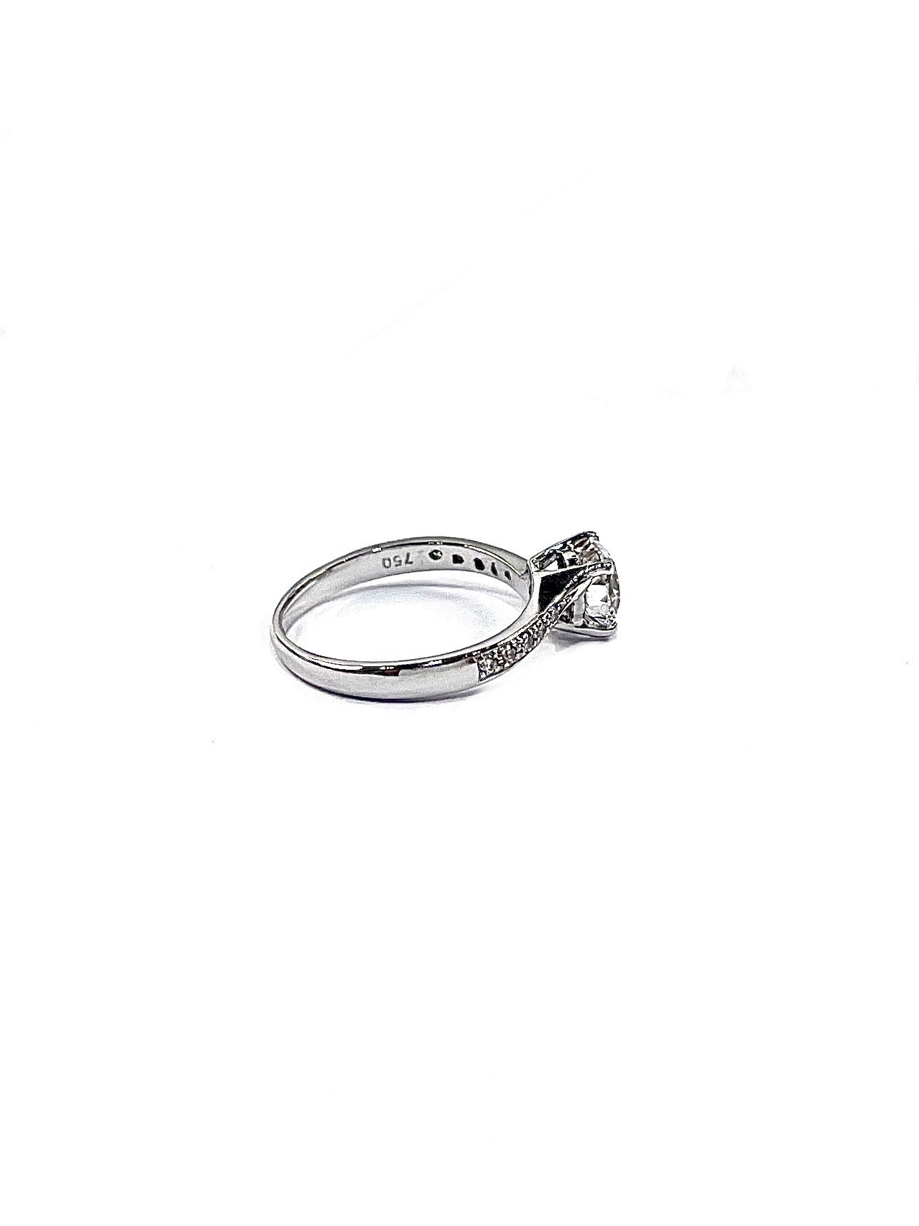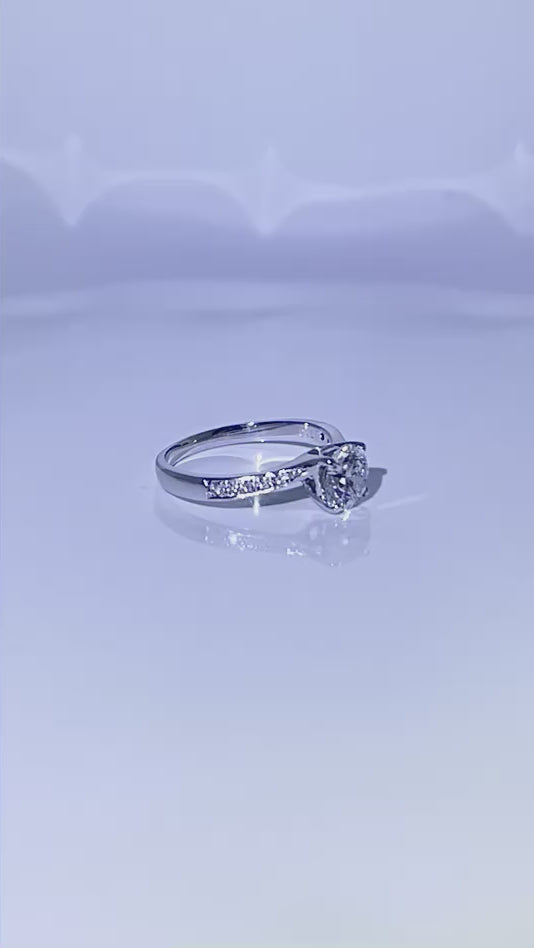 A celebration of harmony and movement, this elegant Tango-inspired ring features a 0.70-carat round brilliant diamond in a colorless grade. Framed by a flowing band of ten accent diamonds, the center stone is set to capture light from every angle, revealing its fire and brilliance. The silhouette is refined yet expressive, a timeless piece that dances with quiet elegance.