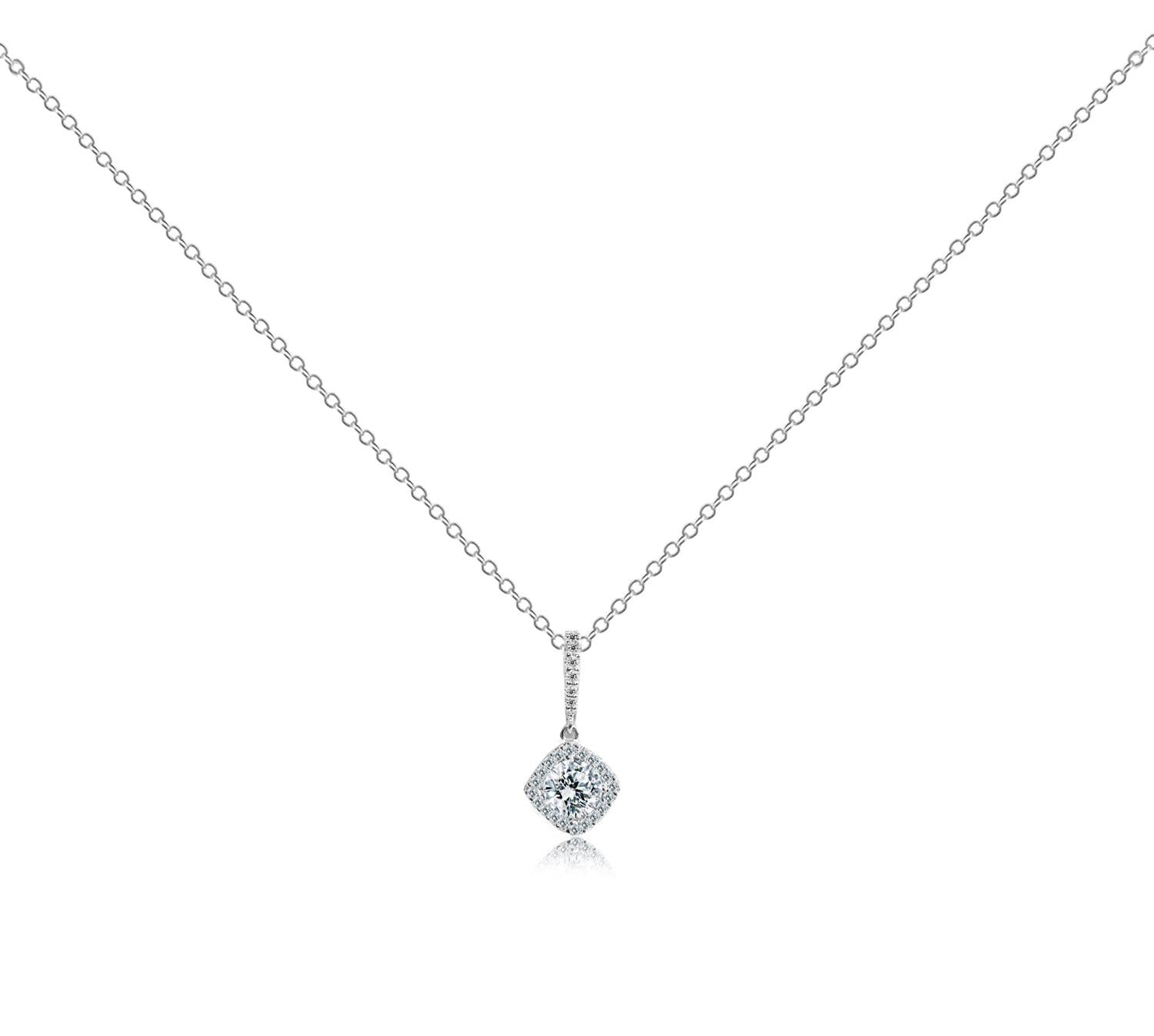 Diamond pendant setting scintillating with 25 round brilliant diamonds 0.121 in 18k gold, white. Can be crafted to set individual centre diamond carat size 0.30 to 3ct, white, rose, yellow, platinum. (PCX21)