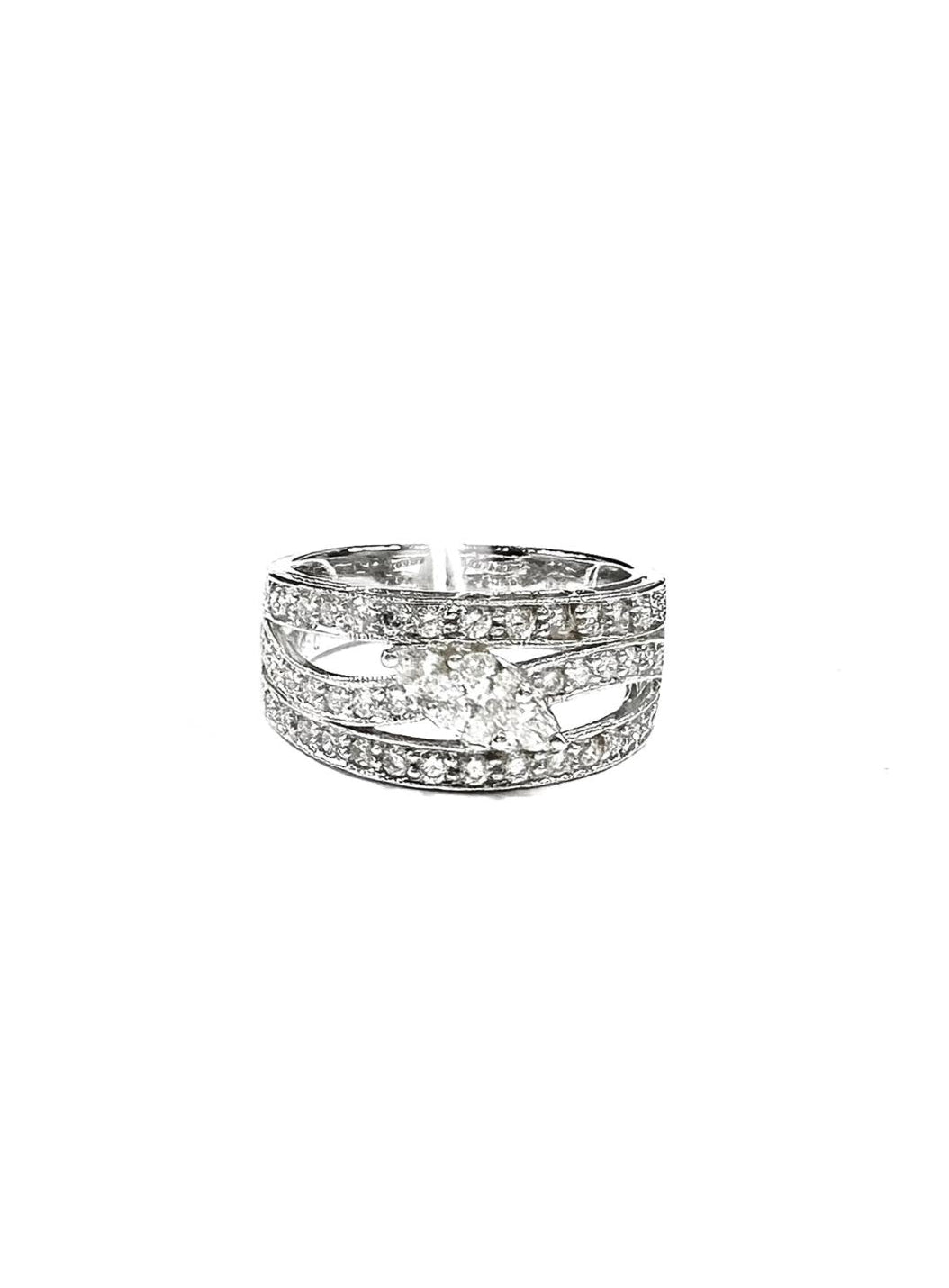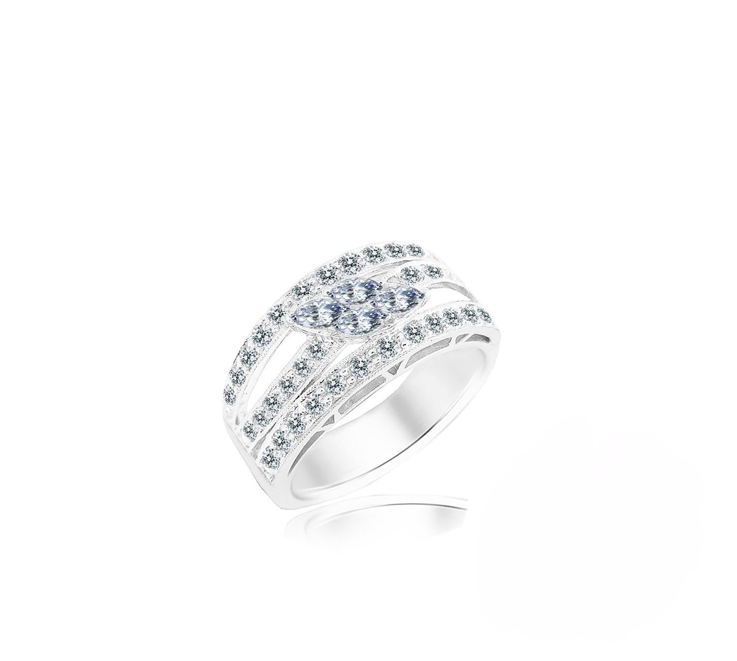 Diamond ring with 4 marquise shaped diamonds 0.25 carat and 44 round brilliant diamonds 0.66 carat in 18k gold, white. (18k, Natural)