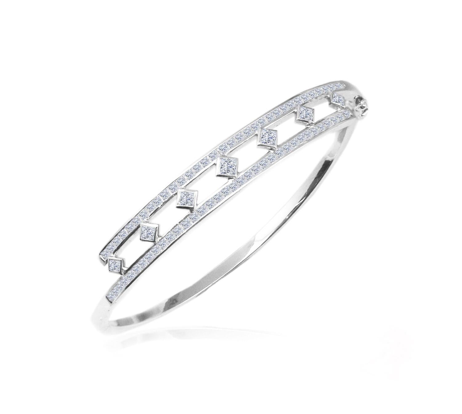 Diamond bangle with 78 princess cut diamonds 1.92 carat in 18k gold, white. (18k, Natural)