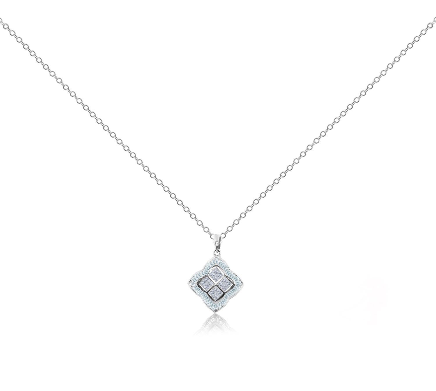 Diamond pendant with 44 tapered diamonds 0.58 carat and 16 princess cut diamonds 0.41 carat in 18k gold, white. (18k, Natural)