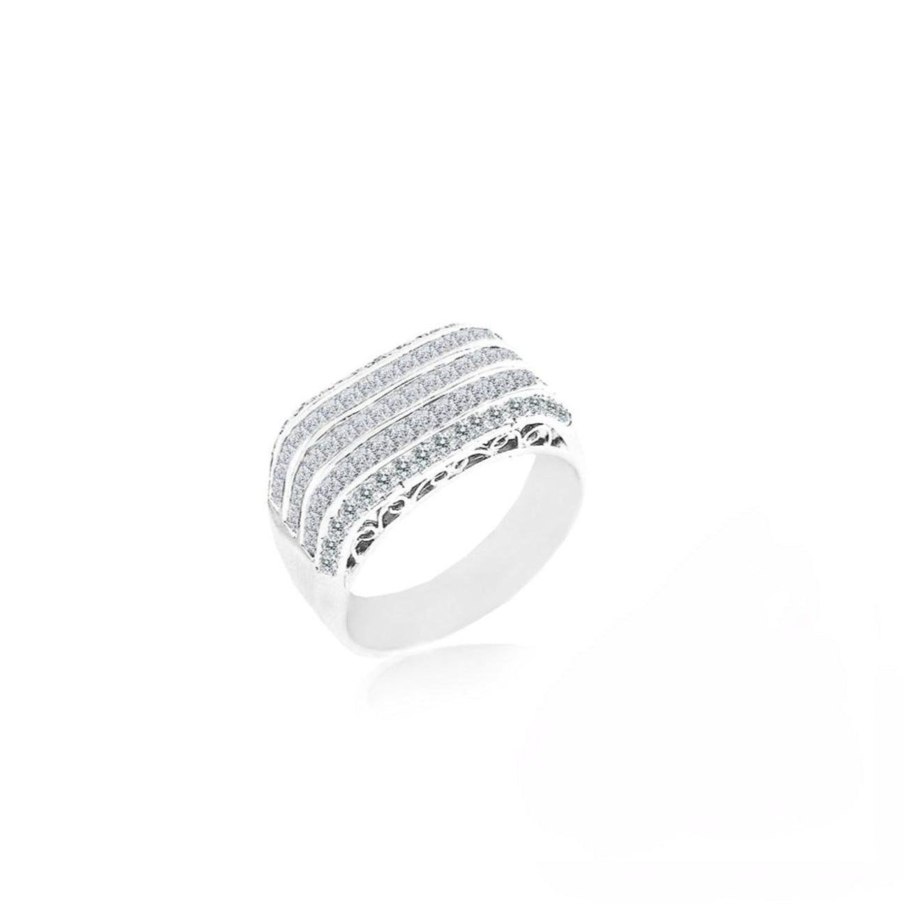 Diamond ring with 39 princess cut diamonds 0.92 carat and 43 round brilliant diamonds 0.12 carat in 18k gold, white. (18k, Natural)