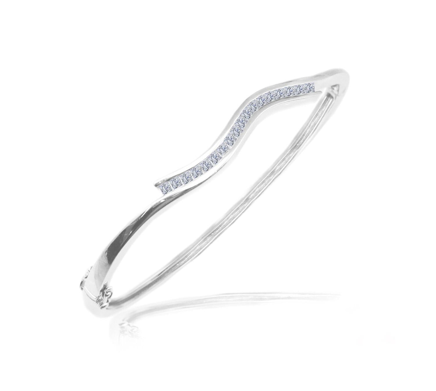 Diamond bangle with 18 princess cut diamonds 0.828 carat in 18k gold, white. (18k, Natural)