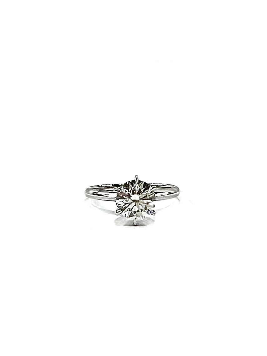A graceful ode to timeless elegance, this ring features a 1.20-carat round brilliant diamond, admired for its fire and colorless beauty. Set on a smooth, classic band, the refined silhouette draws focus to the luminous center stone. With its balanced proportions and enduring charm, this design is a pure reflection of love, simplicity, and sophistication.