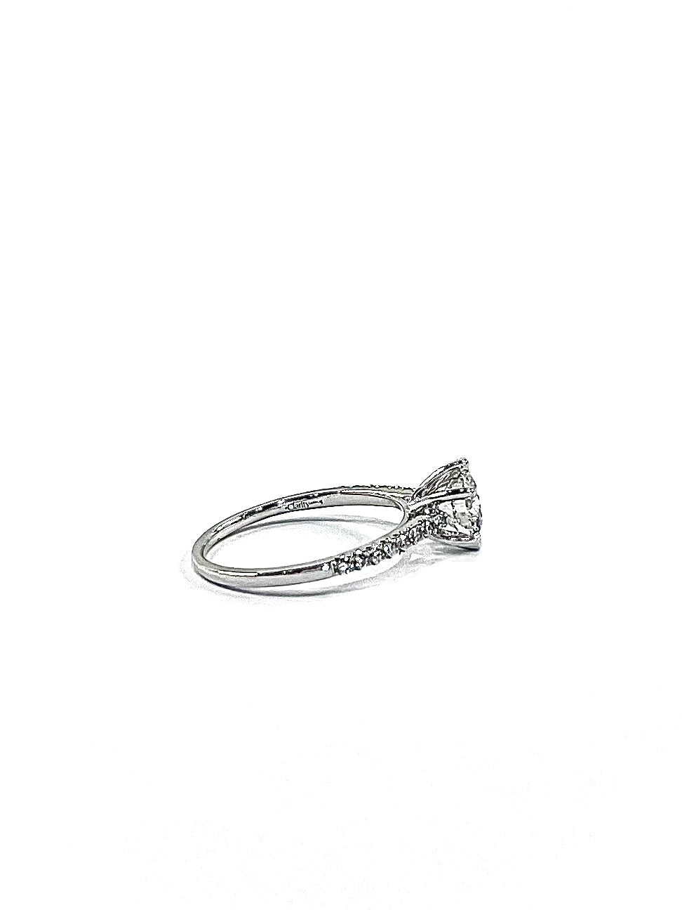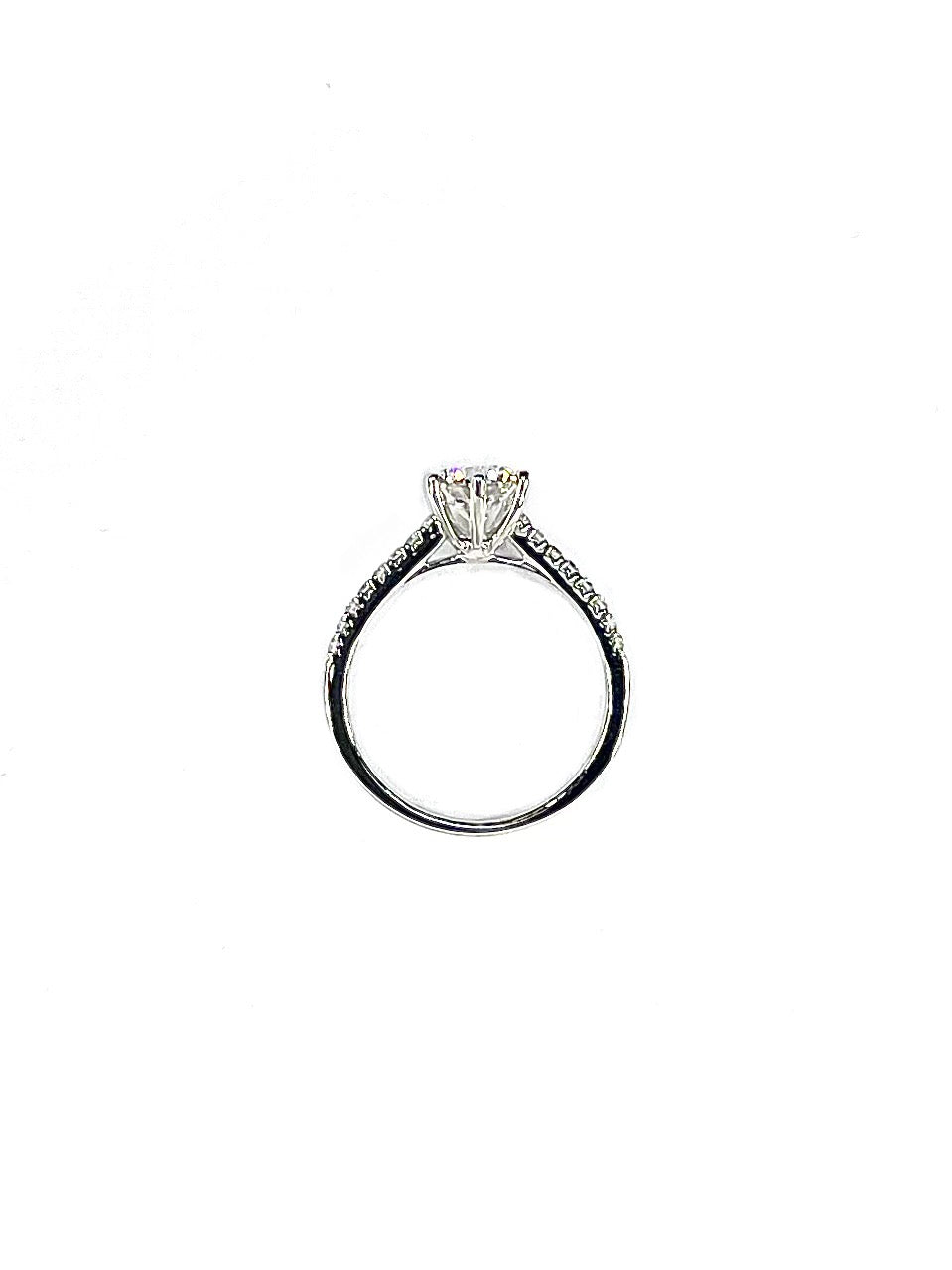 An elegant ode to classic beauty, this ring showcases a 1.00-carat round brilliant diamond at its heart. A pavé band adorned with 16 diamonds adds a soft shimmer, guiding the gaze to the luminous center. With its balanced design and timeless grace, this piece reflects both simplicity and everlasting love.
