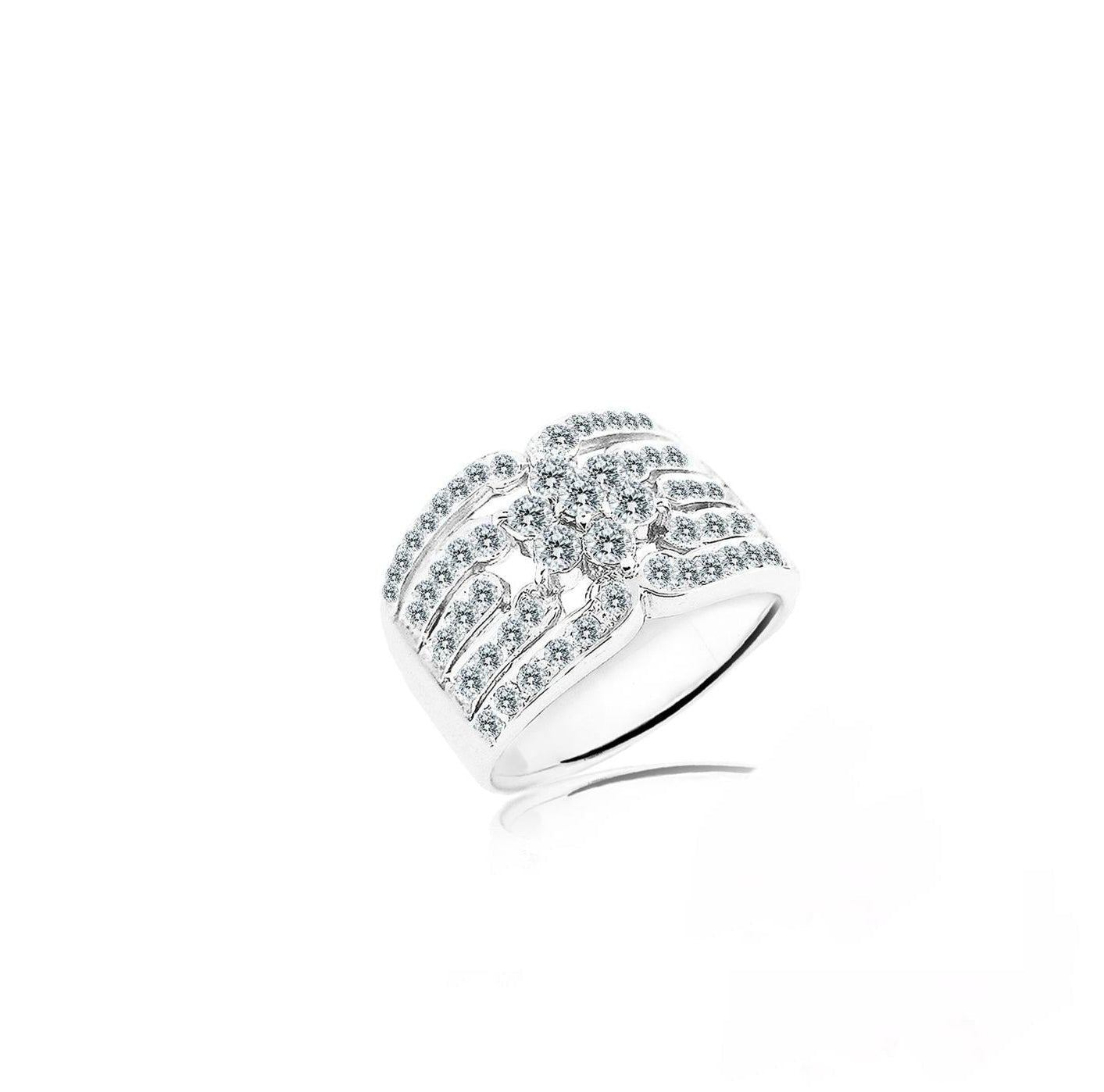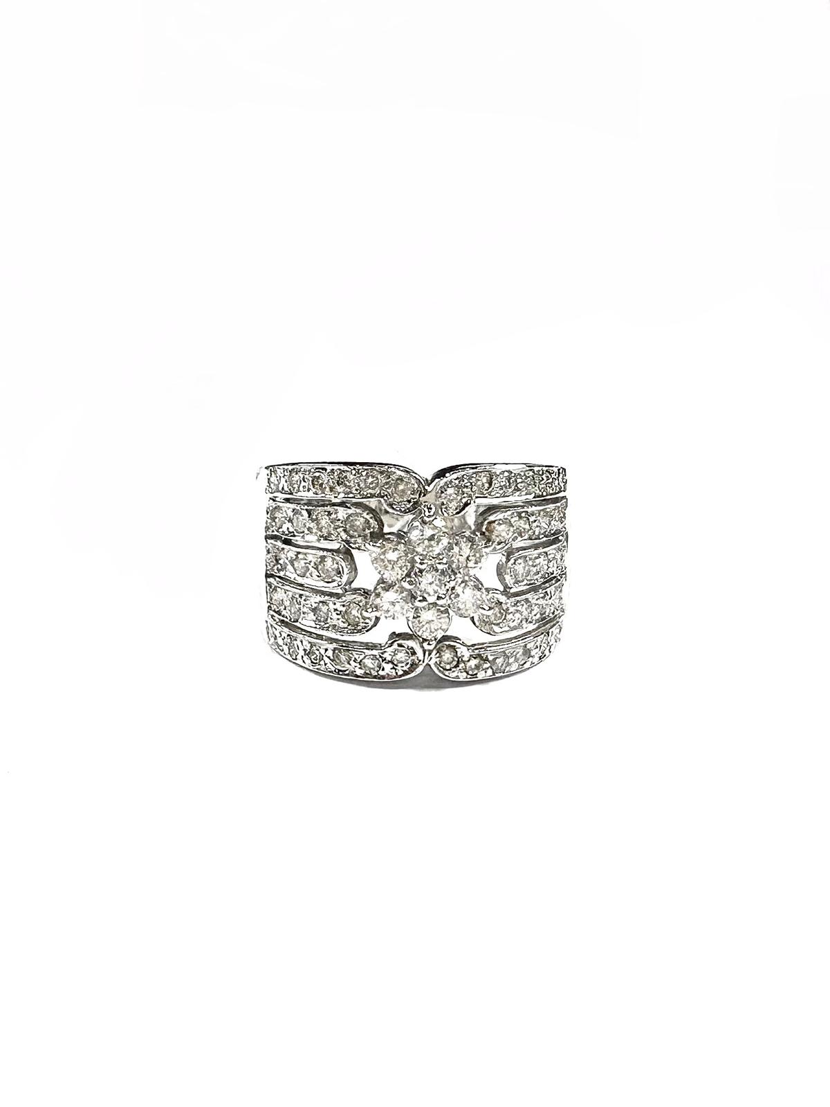 Diamond ring with 7 round brilliant diamonds 0.30 carat and 46 round brilliant diamonds 0.62 carat in 18k gold, white. (18k, Natural)