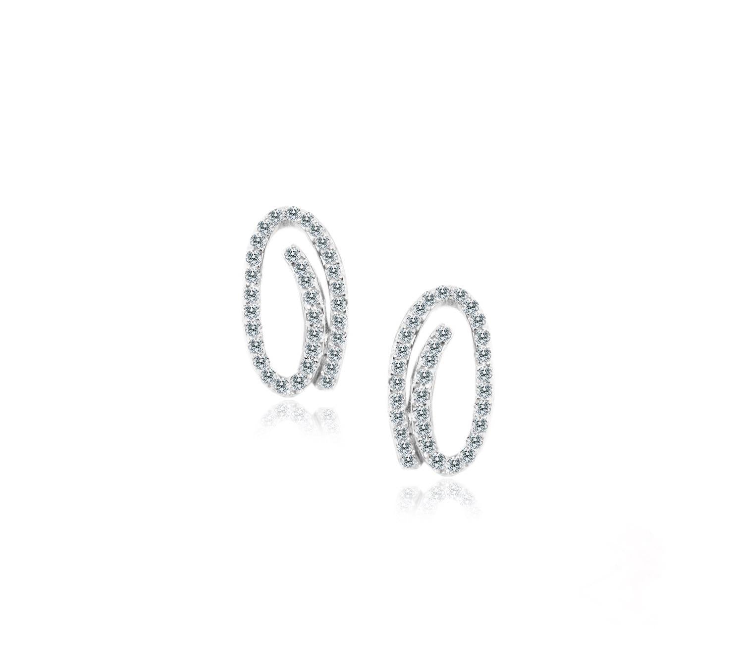 Diamond earrings with 70 round brilliant diamonds 1.02 carat in 18k gold, white . (18k, Natural)