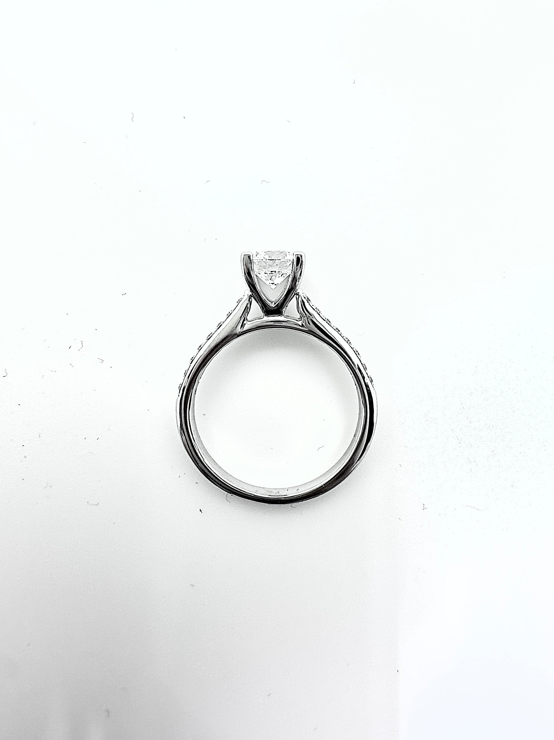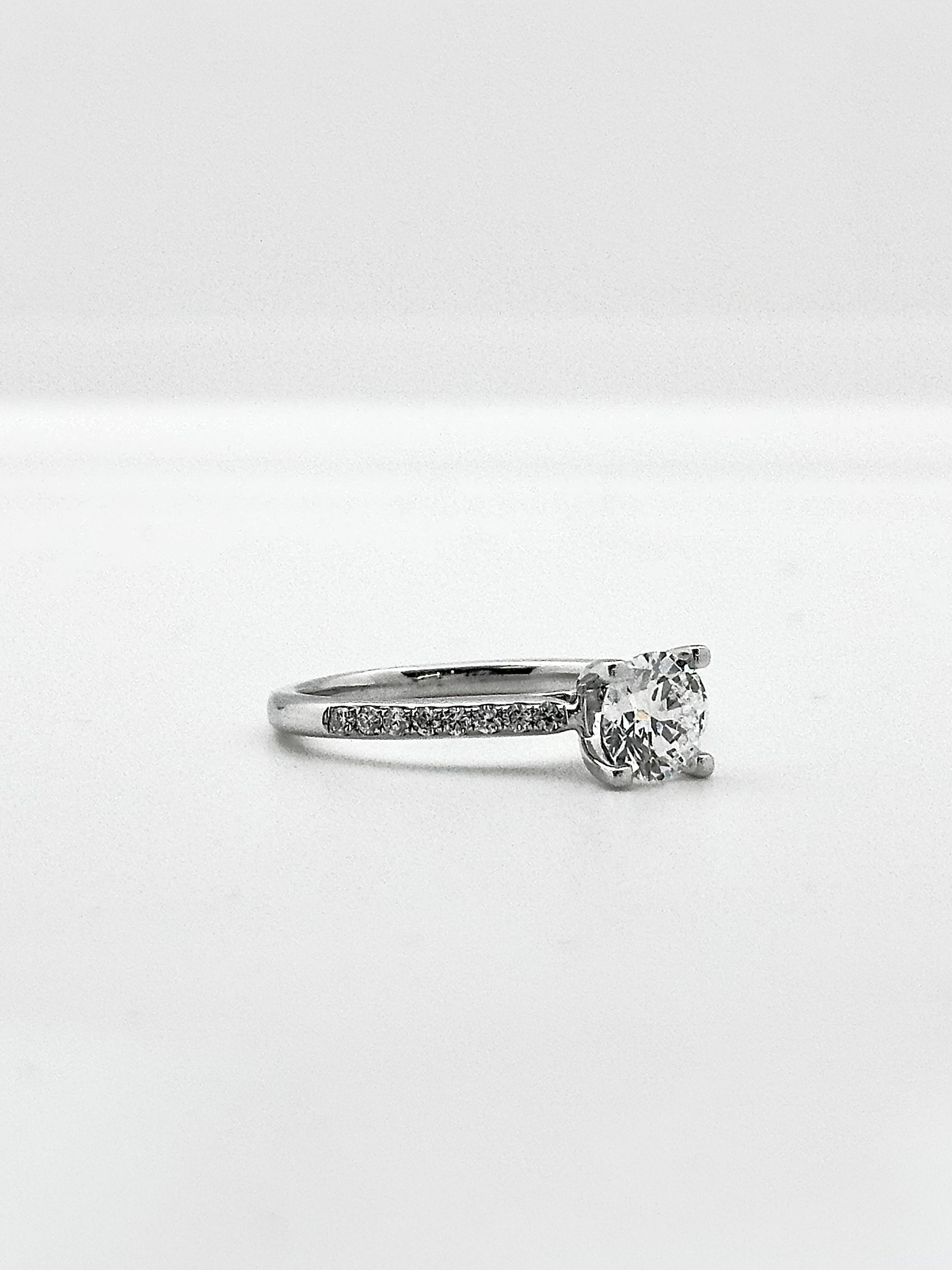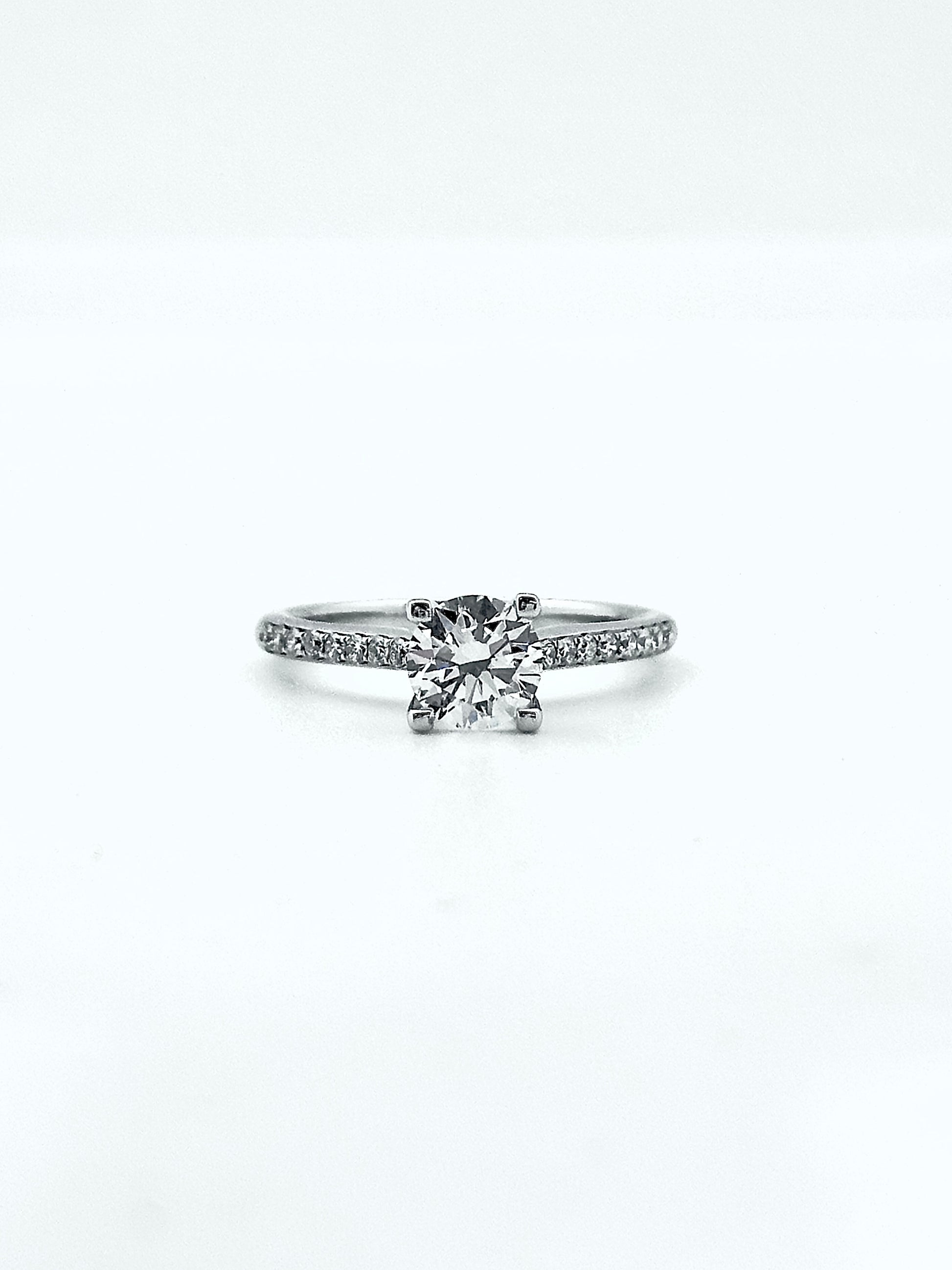Elegant in its simplicity, this ring features a 1.0 carat colorless round brilliant diamond, selected for its exceptional clarity and balanced brilliance. Set within a classic design, the centre stone remains the focal point, radiating light with understated confidence.