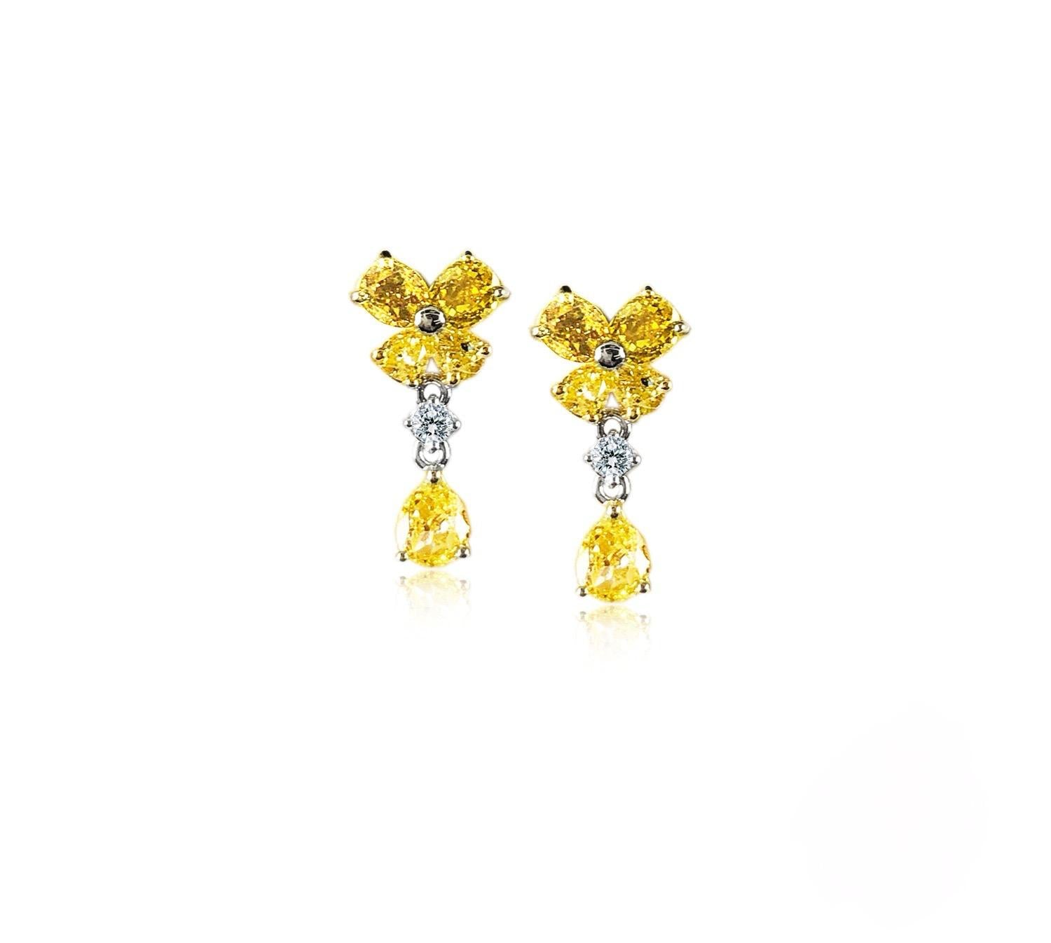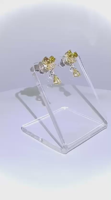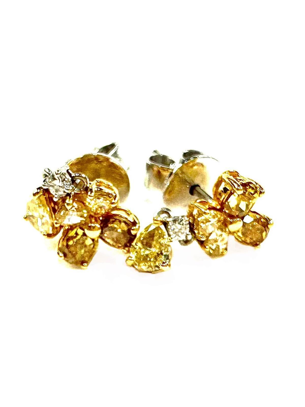 Earrings with 10 yellow sapphires 1.35 carat and 2 round brilliant diamonds 0.05 carat in 18k gold, white and yellow. (18k, Sapphire)