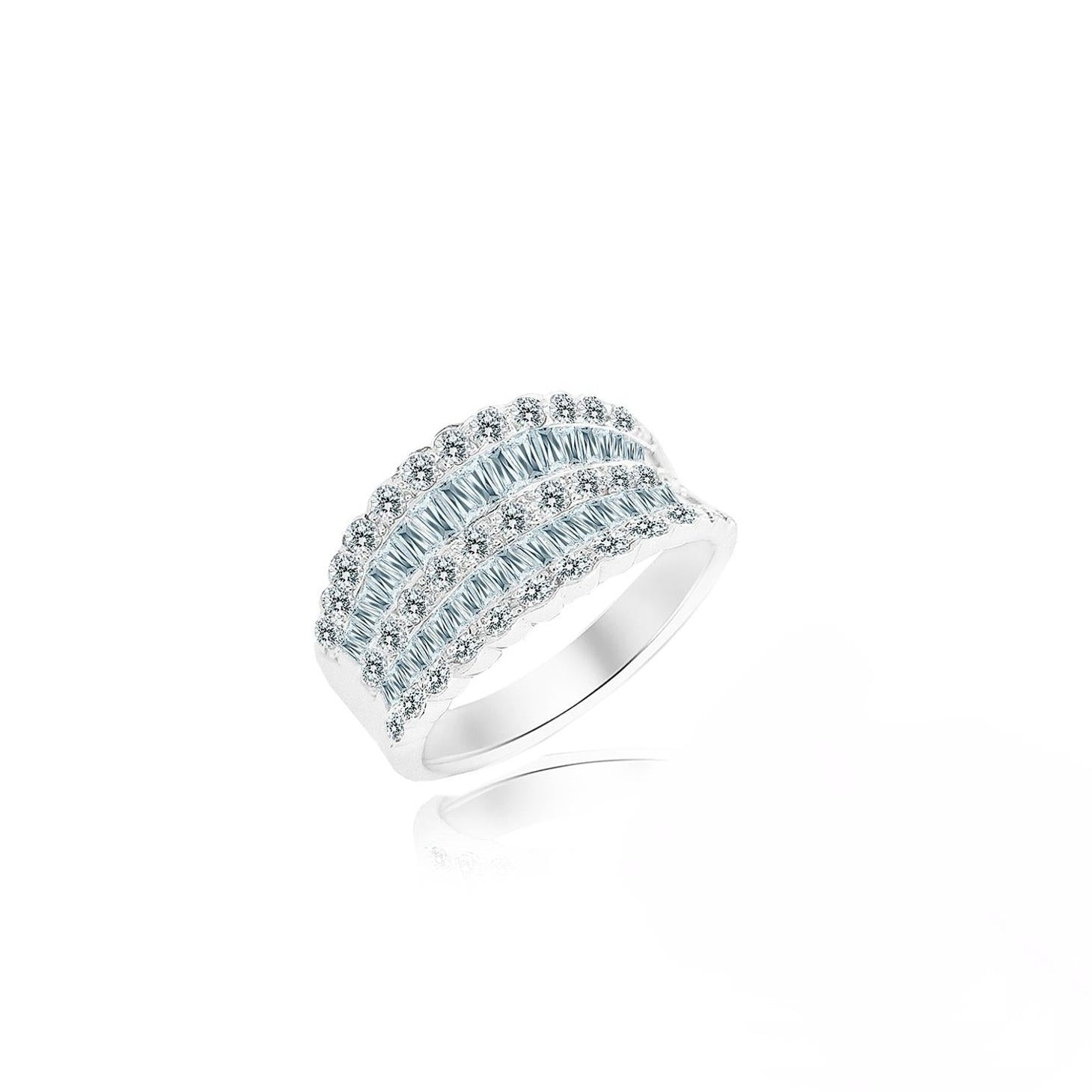 Diamond ring with 37 tapered diamonds 1.16 carat and 37 round brilliant diamonds 0.70 carat in 18k gold, white. (18k, Natural)