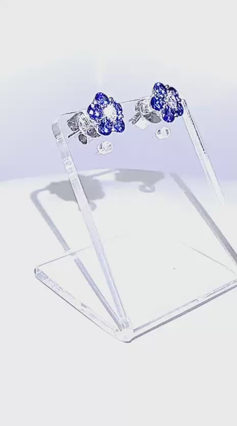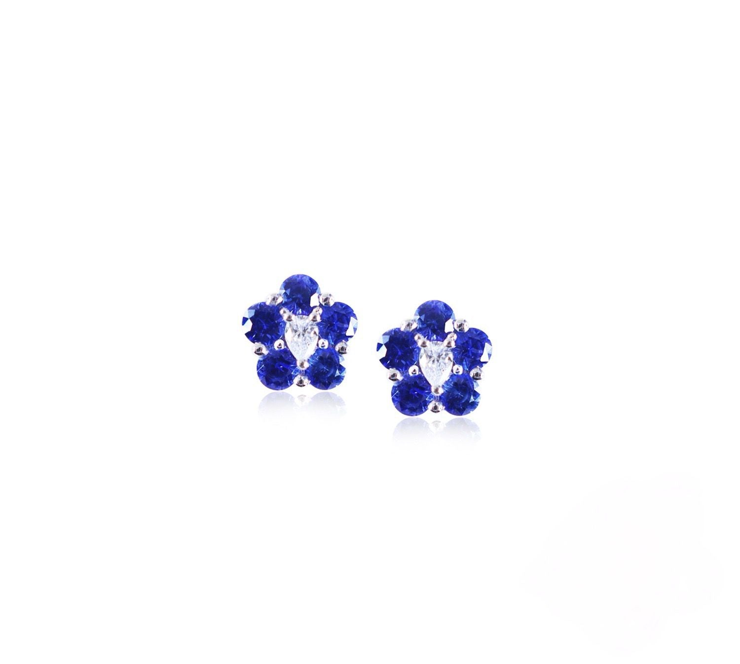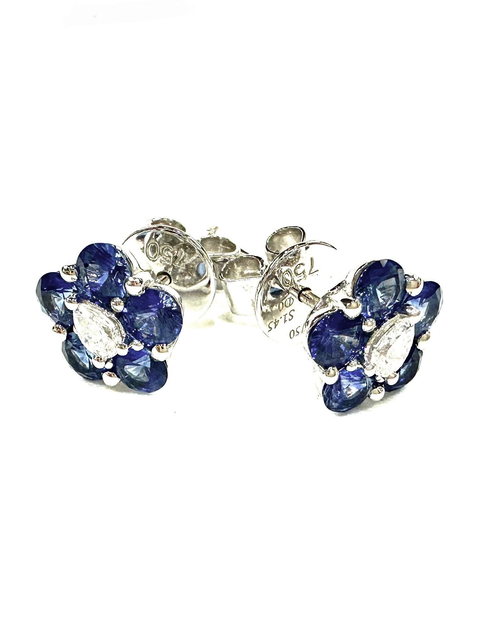 Blue Sapphire earrings with 10 Round Blue Sapphire 1.45carat and 2 pear shape diamonds 0.17 carat in 18k gold, white. (18k, Sapphire)